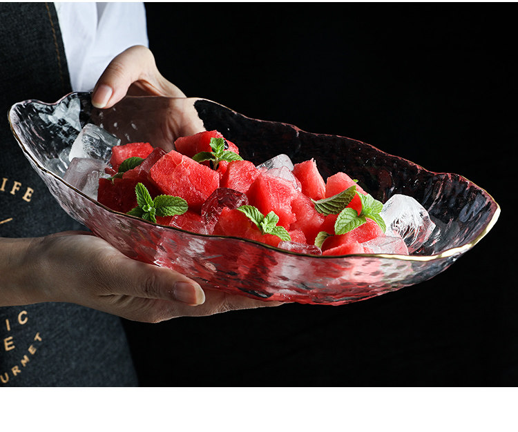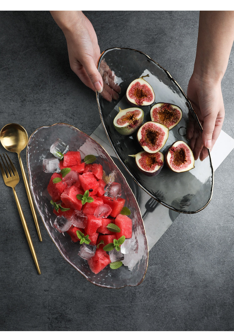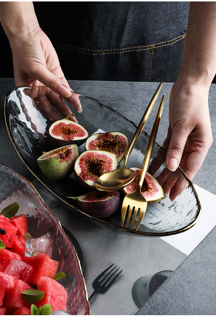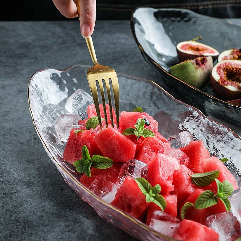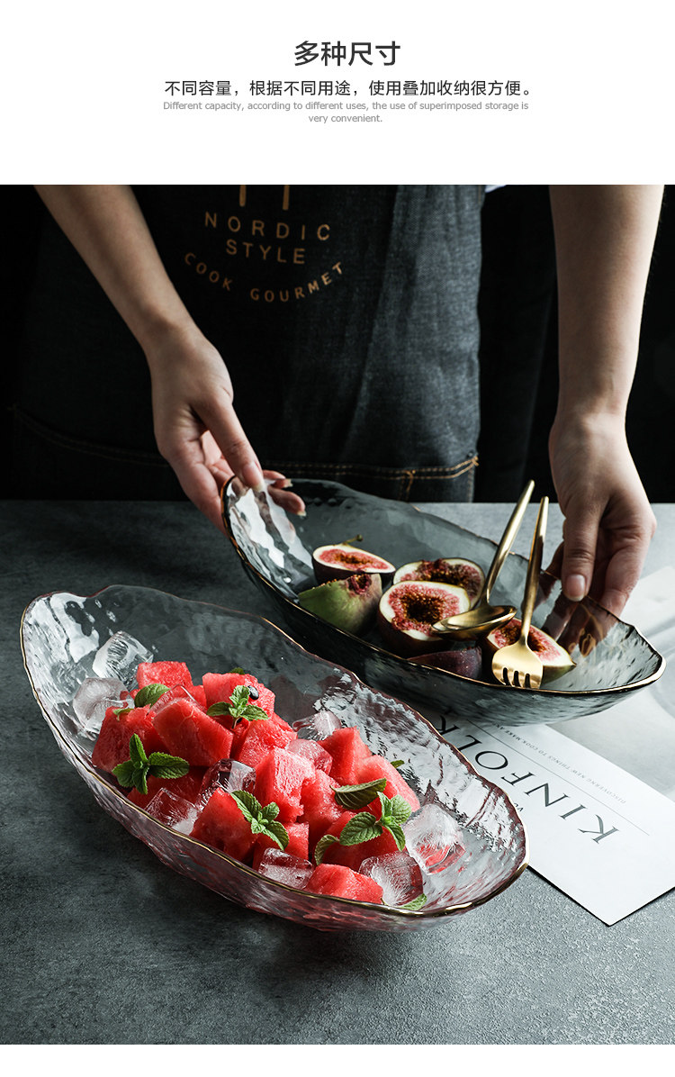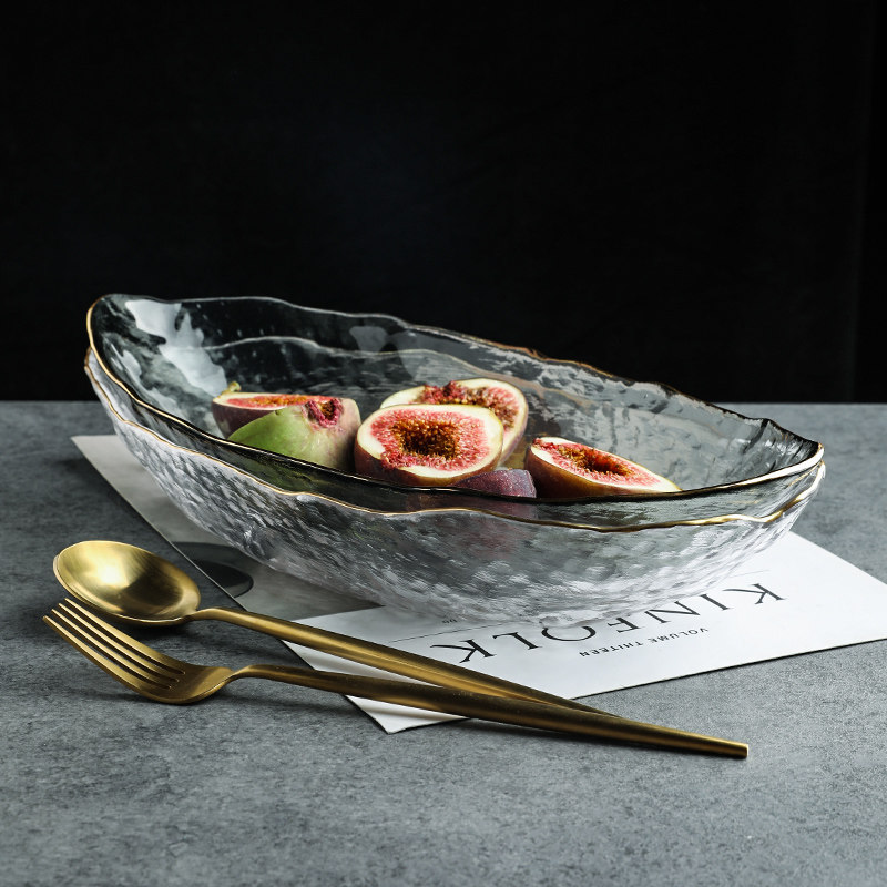 舍里 Японская стиль Phnom Penh нерегулярная стеклянная вода фрукты пластинка лодка -тип гостиной журнальный столик вода фрукты