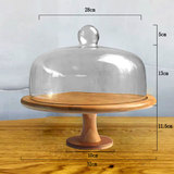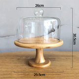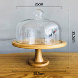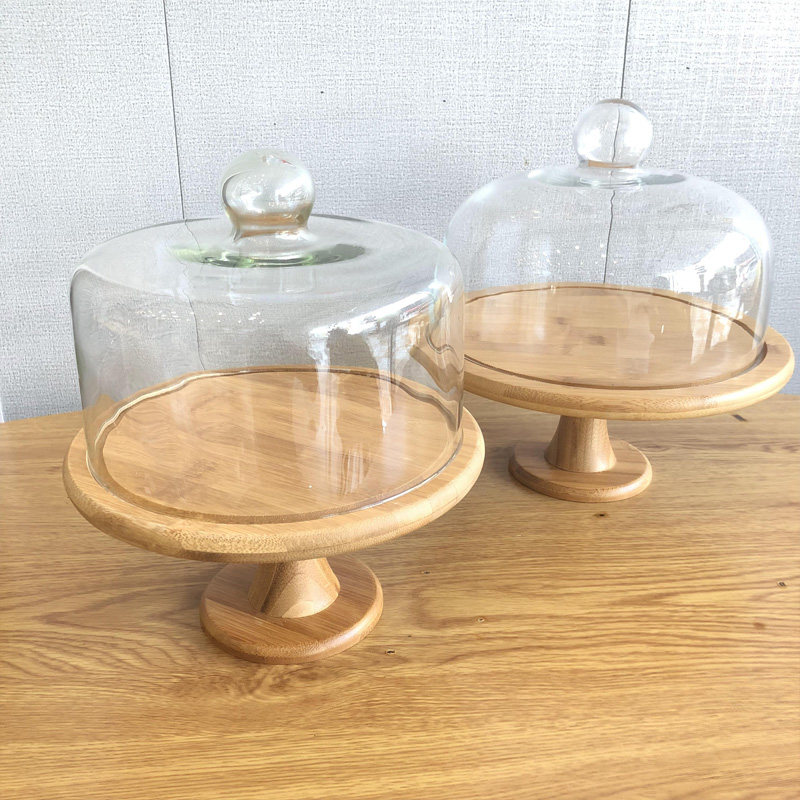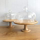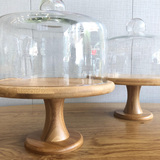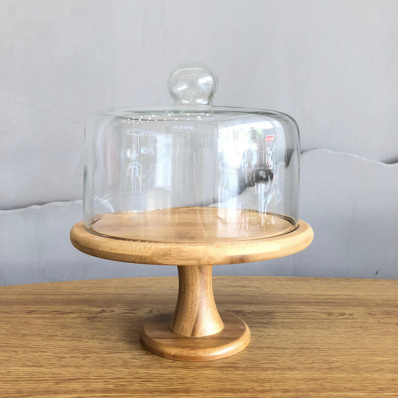 Торт прозрачный стеклянный крышка десерт десертные украшения отображают полку деревянные поддоны с высокой высокой высокой