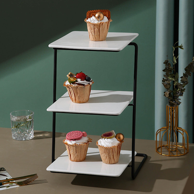 Керамический послеобеденный чай с тремя слойной пирожной тарелкой для расстояния расстояния с космосообразным лоток десерт десертный десерт на полке чашка многослойная бумажная чашка мусс хлеб