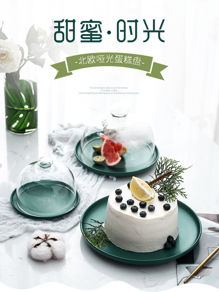 Керамический поднос для торта с глазурью, бытовая стеклянная крышка, кондитерская тарелка, десертная тарелка с крышкой, десертный стол, витрина с фруктами
