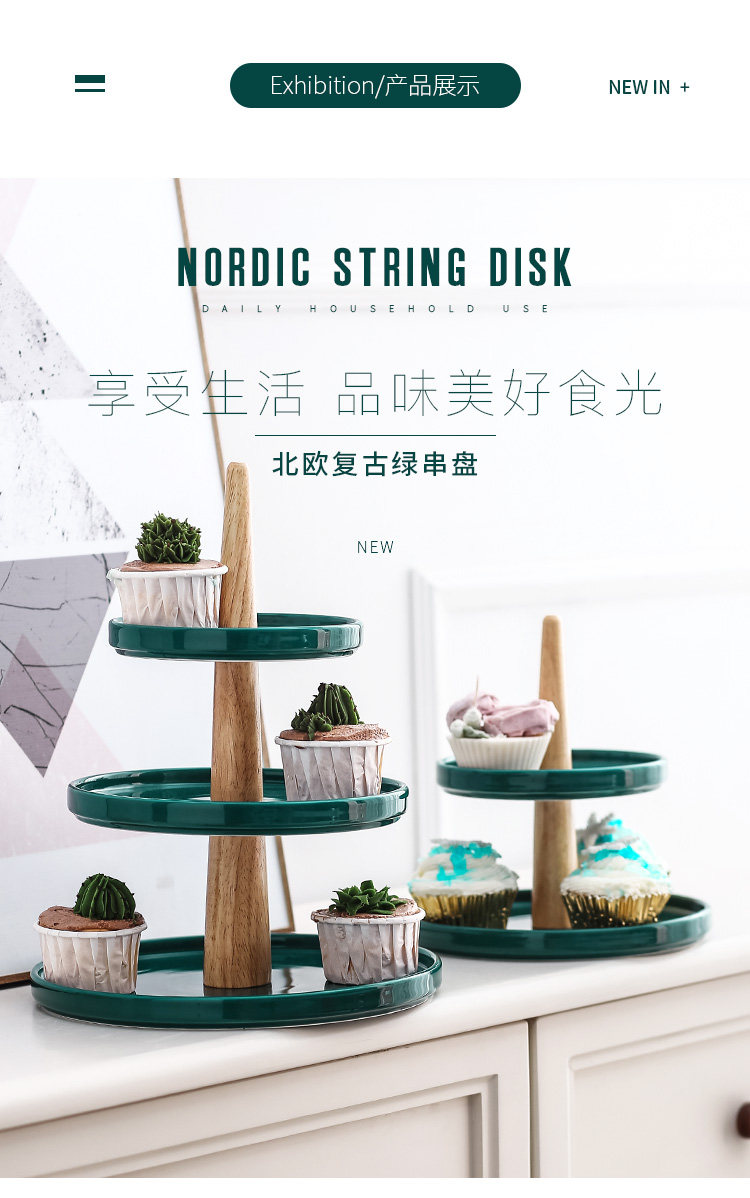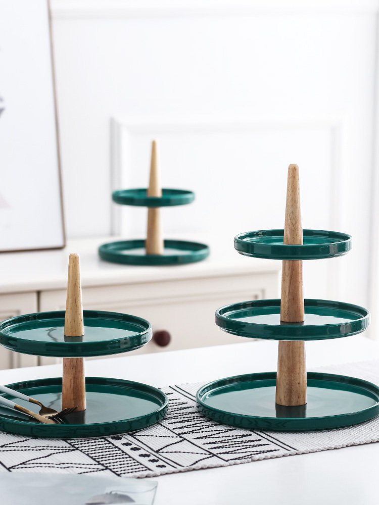 Темно-зеленый трехслойный керамический поднос для кексов, десертный стол, витрина, тарелка для послеобеденного чая, закуска, многослойная тарелка для выпечки