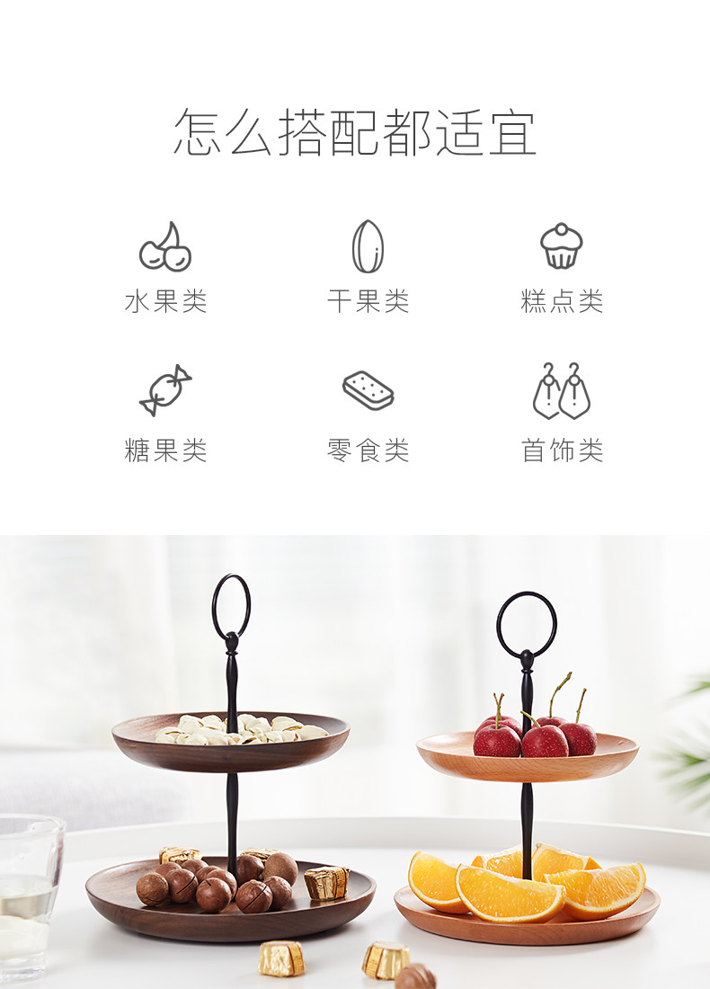 Деревянный сушеный фруктовый диск Домашняя гостиная простая, современная легкая роскошная высокая высокая сплошная деревянная орехи Семена с двойным слоем