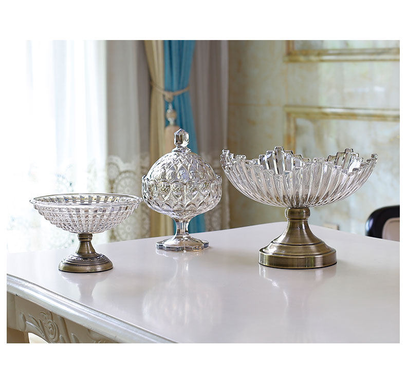Хрустальный стеклянный стекло с высоким содержанием водяной фруктовой тарелки Творческая гостиная домашняя конфетная диск американский свадебный фруктовый бассейн сухой фруктовый диск поставки будда