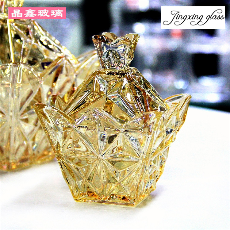 Старший хрустальный фруктовый стекло с крышкой с нежной мини -блюдо из конфеты на тарелке действительно на самом деле похоже на закусочный диск