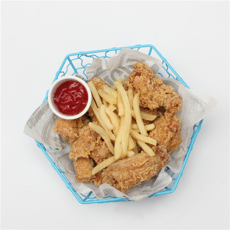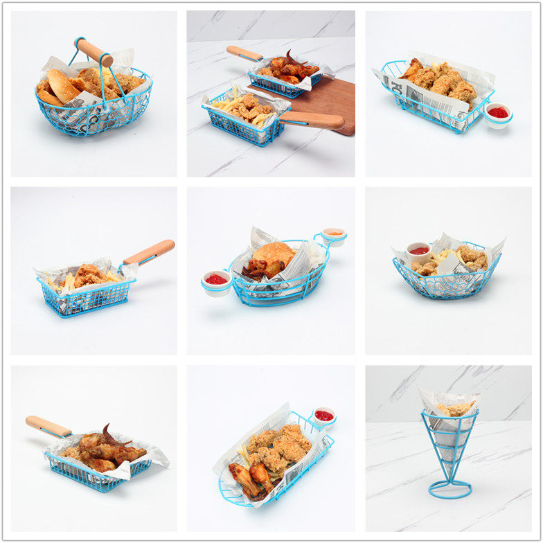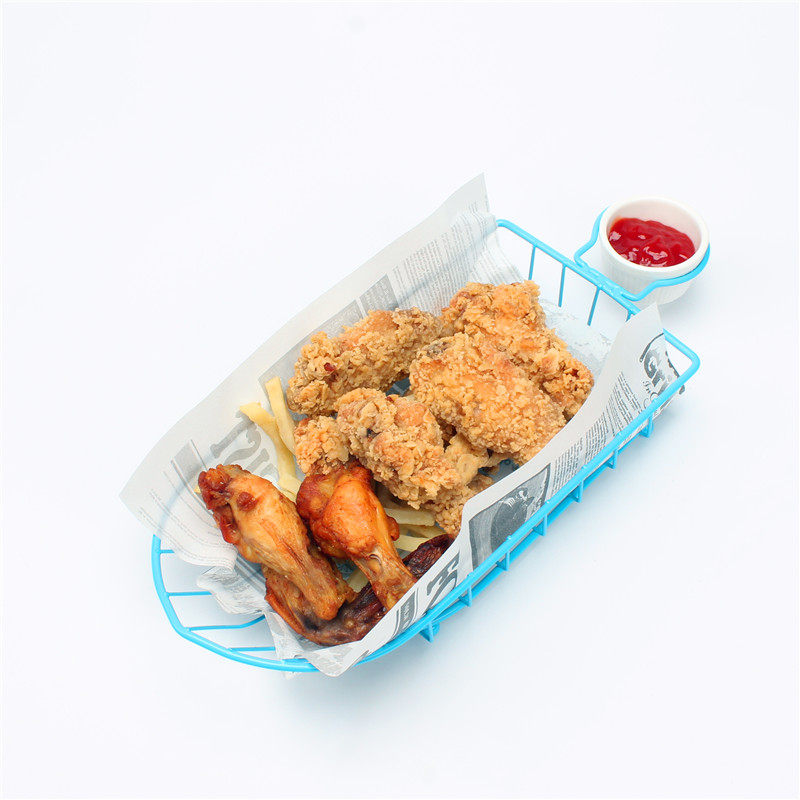 Кафе закуски тарелка американская картошка и тарелки креативная масляная бумага для пищевой корзины простая курица с куриной куриной тарелкой синяя