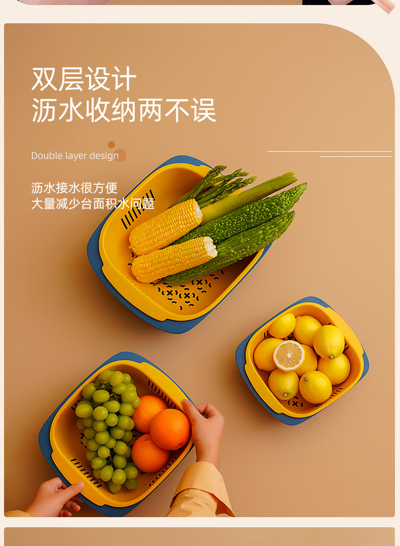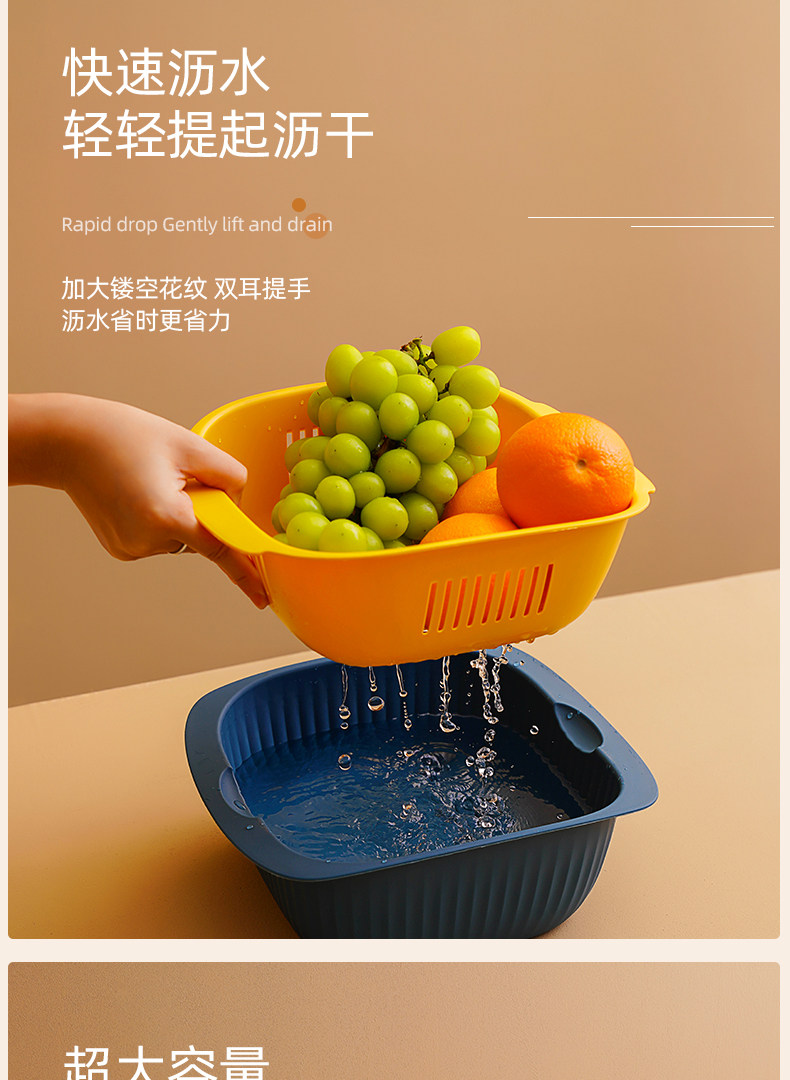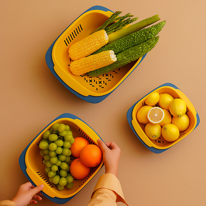 Двойной слой растительного бассейна дренажная корзина кухня вода мыть фрукты