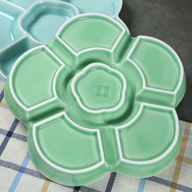 Longquan Celadon Multi -Grid Fruit Plate Home Ceramic Snack Plate Творческая тарелка для завтрака тарелка расщепленная пластина цветочная тарелка