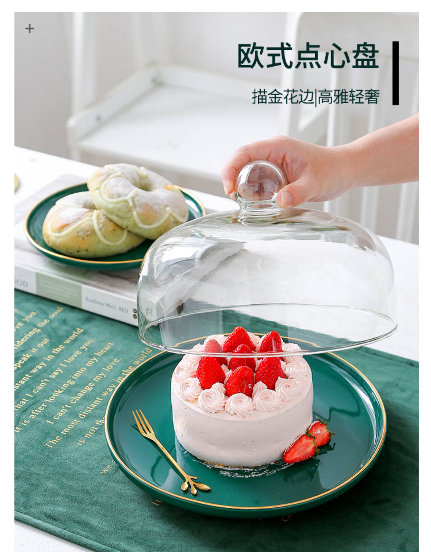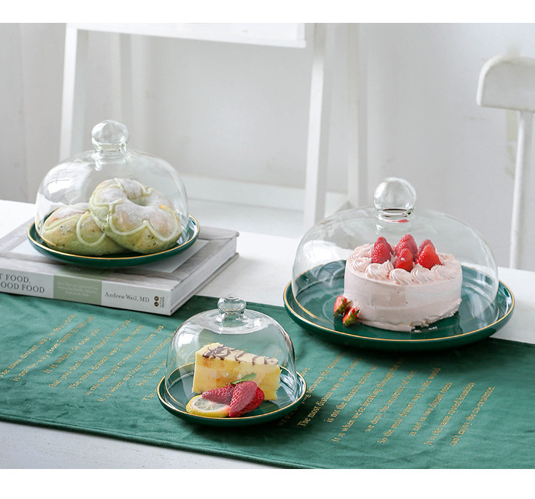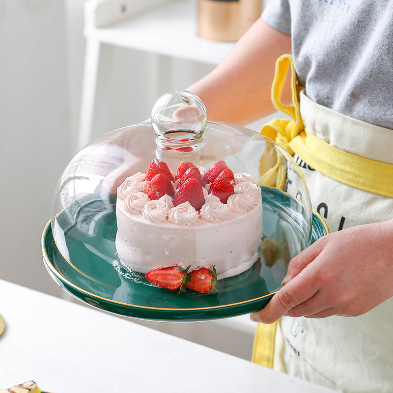 Изумрудная вода фруктовая тарелка Light Loxy Style Cake Hode Home Послеобеденный чайный закусочный диск с закусочной с крышкой, чтобы попробовать коробку для тарелки