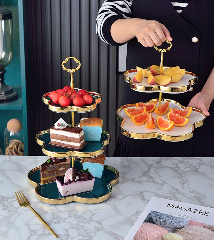 Конфетная тарелка на стойке регистрации креативная керамика северная трехслойная закусочная полка послеобеденной чай двойной диск гостиная полка торт
