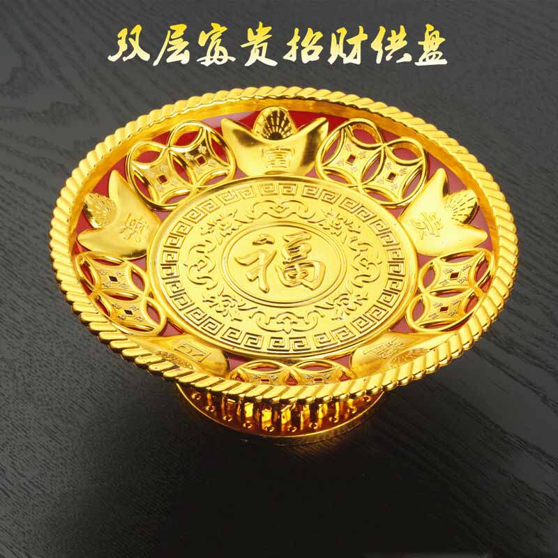 Golden Sinot набирает богатство для богатства богатства, посвященного буддийскому использованию фруктового диска синяя буддийского храма Гунгуан Гуан Гонг для буддийской фруктовой пластины