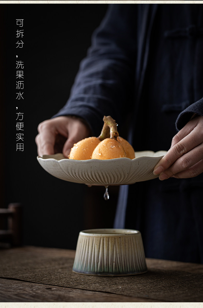 素影 Фрукты пан ретро древний стиль домашняя гостиная кофейные столики творческая керамическая фруктовая тарелка японская стиль новая фруктовая тарелка диск