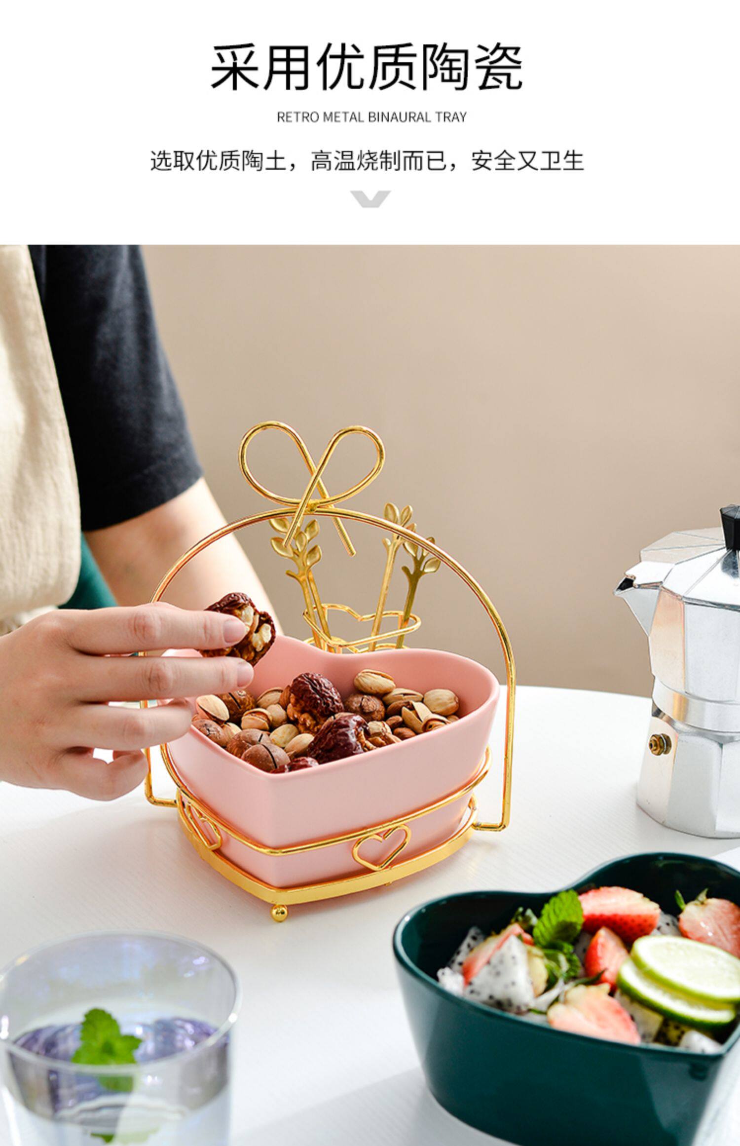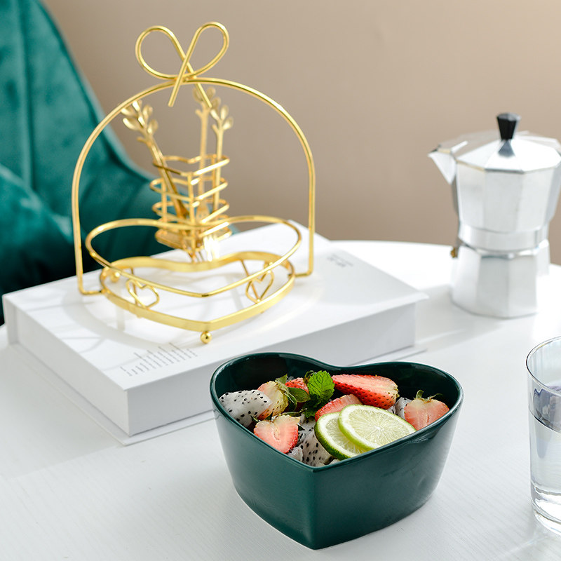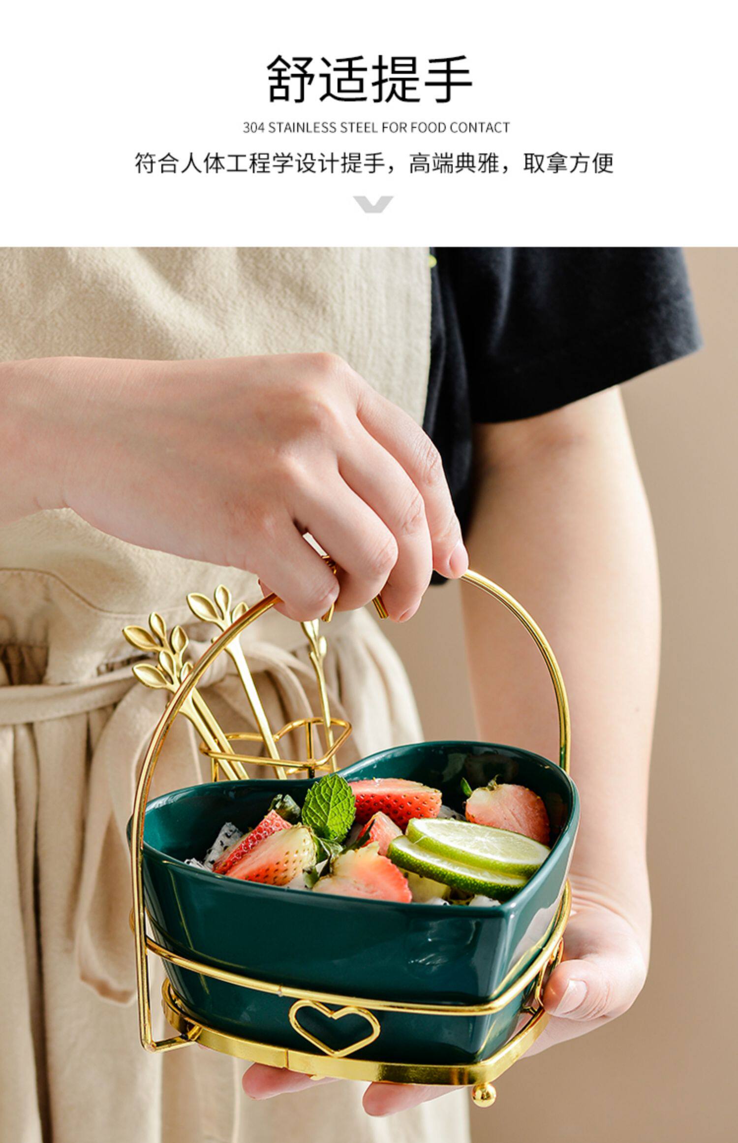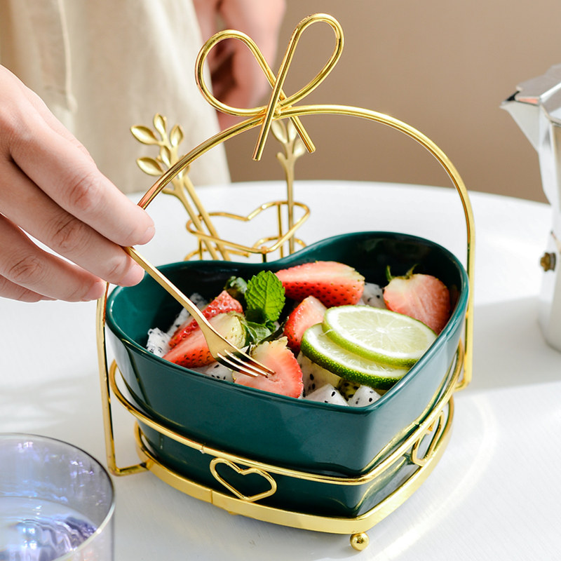 Тарелка с фруктами для гостиной, бытовой керамический набор вилок для фруктов, креативная милая миска для фруктового салата в скандинавском стиле с вилкой
