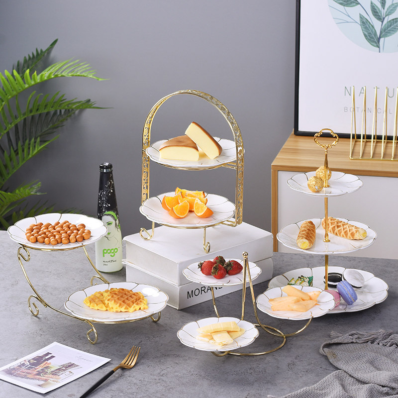 Европейский стиль трехслойный фруктовый поднос набор домашней гостиной журнальный столик с двусторонним тортом Стоя для дневного чая для конфеты десерт десерт десерт