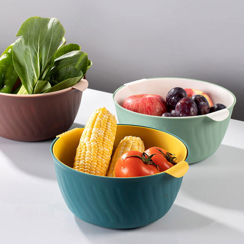 Двухслойная полая корзина для фруктов, корзина для слива фруктов, бытовая корзина для фруктов, большая тарелка для фруктов, креативная кухонная корзина для мытья овощей