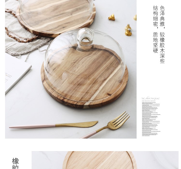 - [Вращение] Большая деревянная тарелка акации+стеклянная крышка