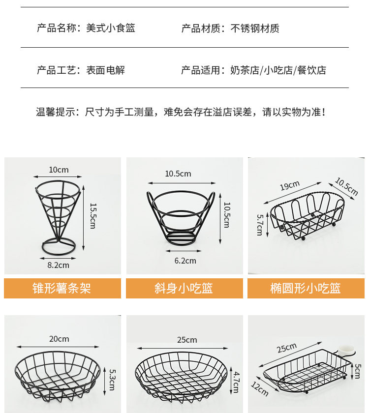 Маленькая корзина из нержавеющей стали, посуда для коммерческого использования, в американском стиле