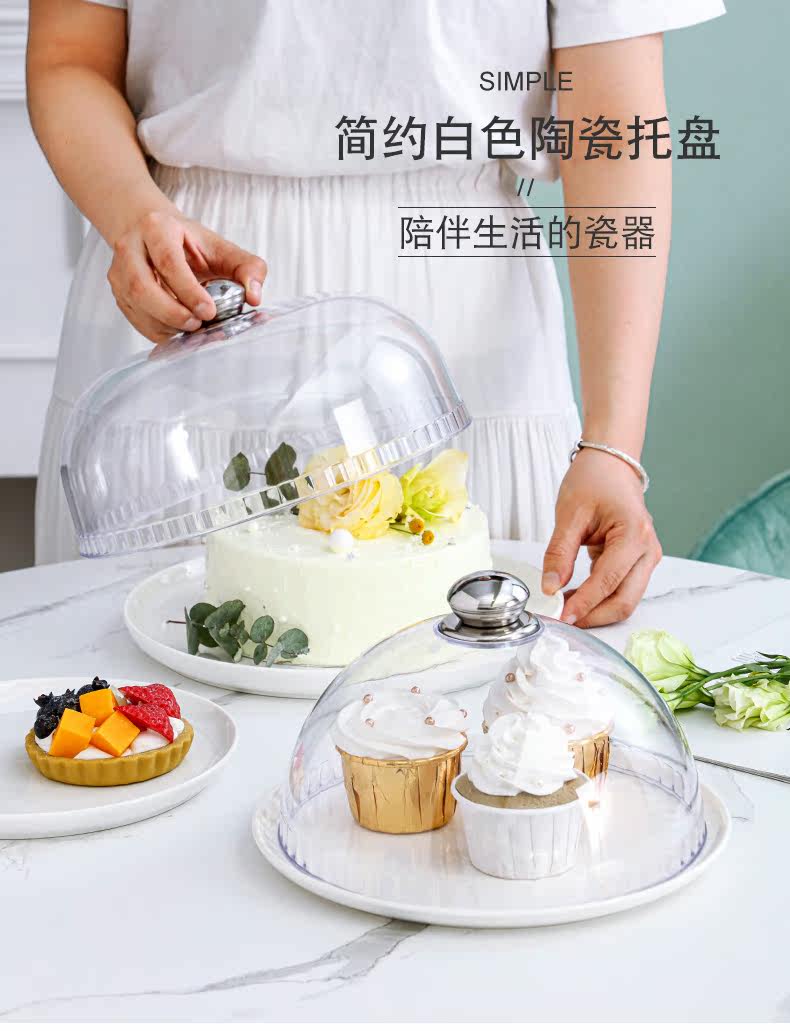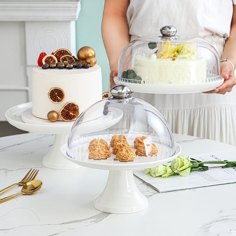 Торговый лоток для камеры, хлебные фрукты, попробуйте съесть прозрачную крышку для пирога керамика высокий стол