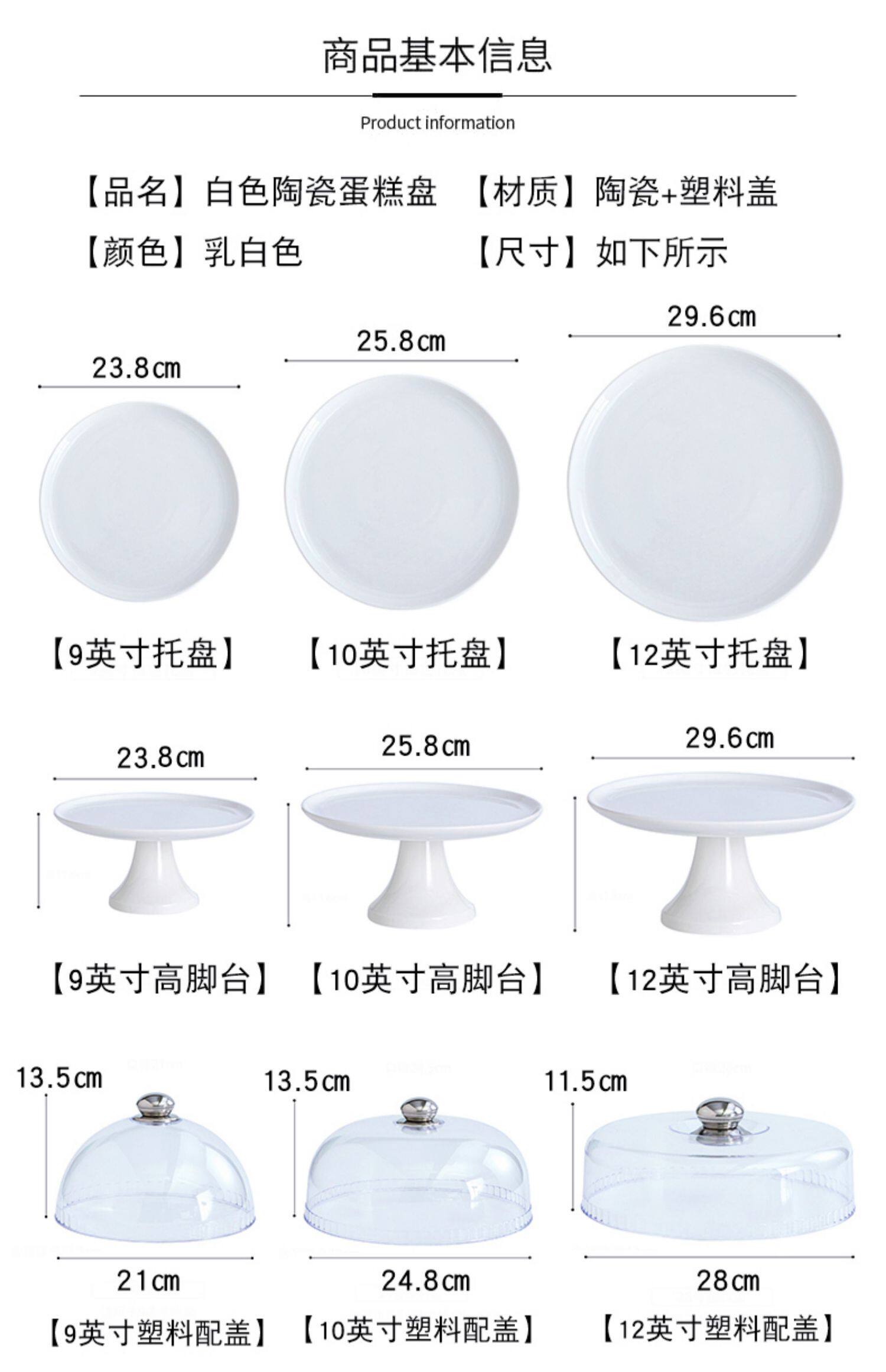 - 9 -INCH Ceramic High Lake Table с пластиковой крышкой для торта