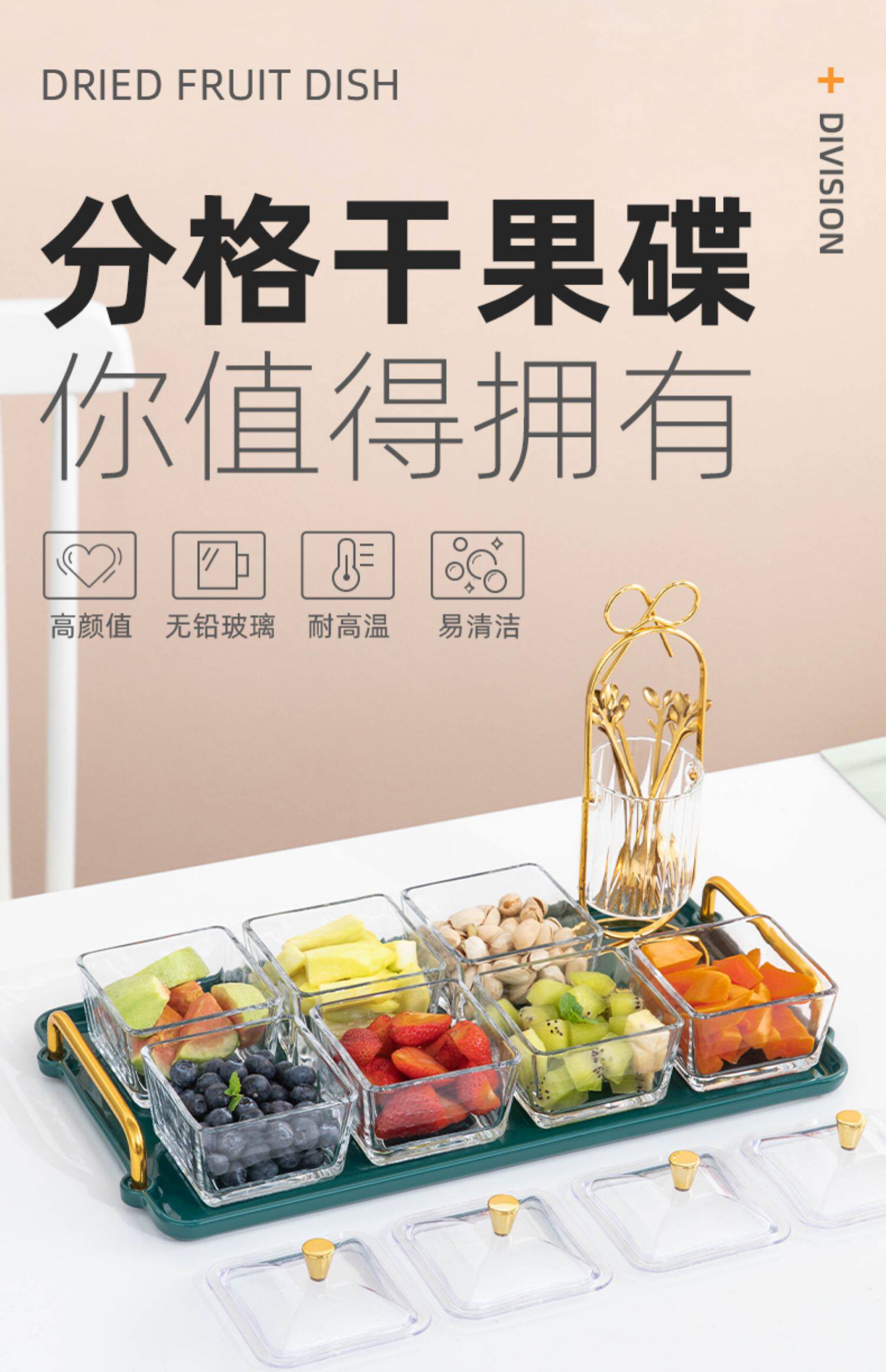 - Квадратные блюда из прозрачного пластикового стекла * 5 + место для хранения вилок + зеленая керамическая тарелка с шестью отделениями и двумя ушками (5 вилок бесплатно)