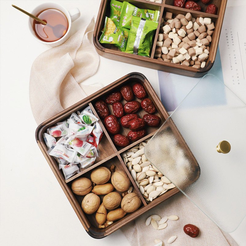 Ящики для сушеного с твердым деревом с квадратными фруктовыми закусками с закусочной, конфеты, конфеты, многослойная стока
