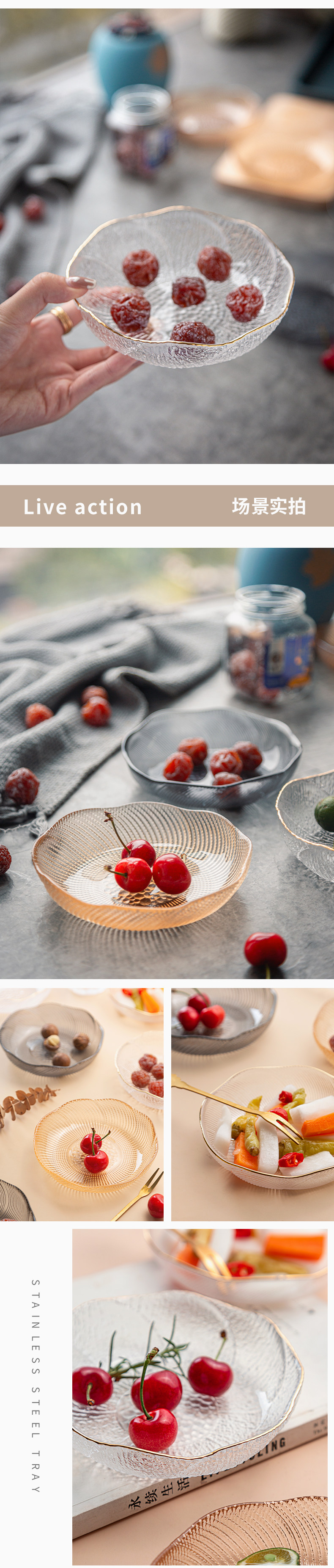 Phnom Penh Прозрачная стеклянная фруктовая тарелка небольшая изысканная гостиная домашняя закуски с сетью коричневая конфеты на стойке стойки передового семя