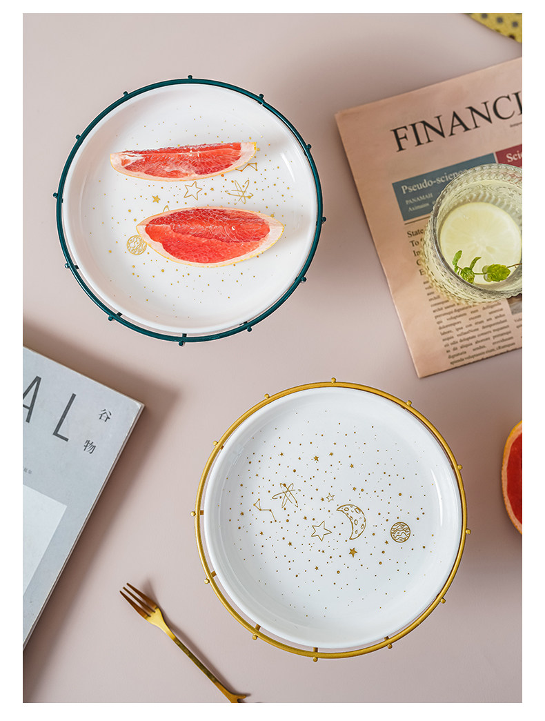 | Цвет: | Золотой штатив, звездное небо, Золотой высокий штатив+твердый цвет белый диск, Золотая вилка из нержавеющей стали |