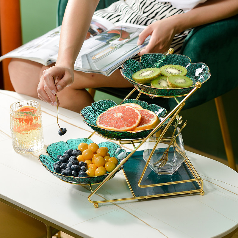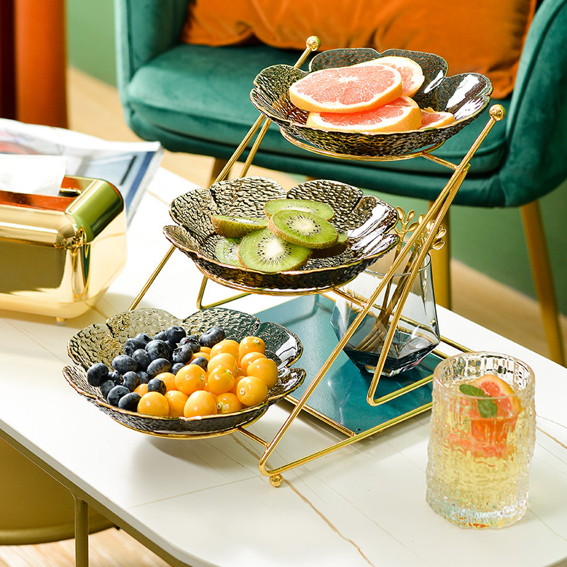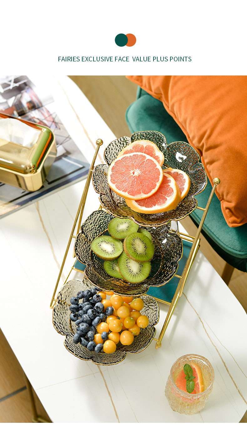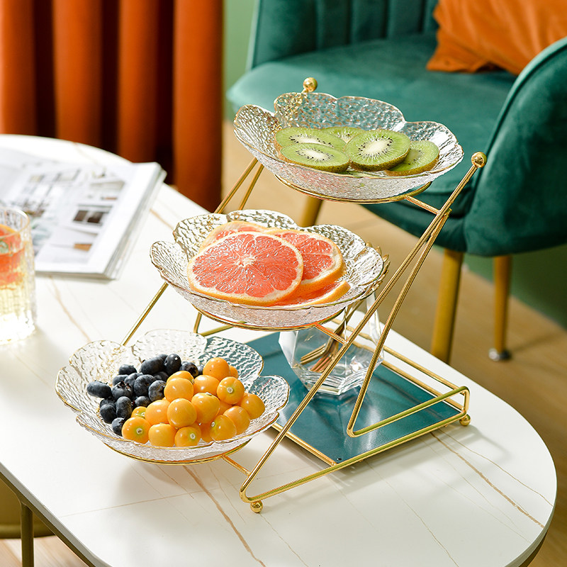 Интернет -красная гостиная домохозяйство фруктовый диск Light Luxury Style High -Crystal Glass Coffee The Plate Fruit Plant Simple Modern Snack Plate