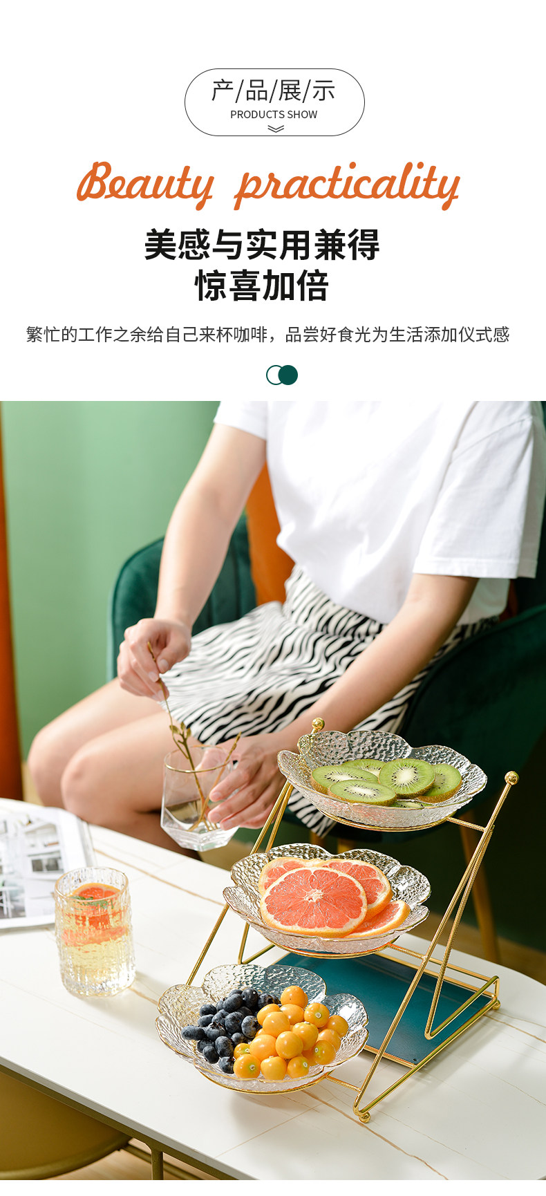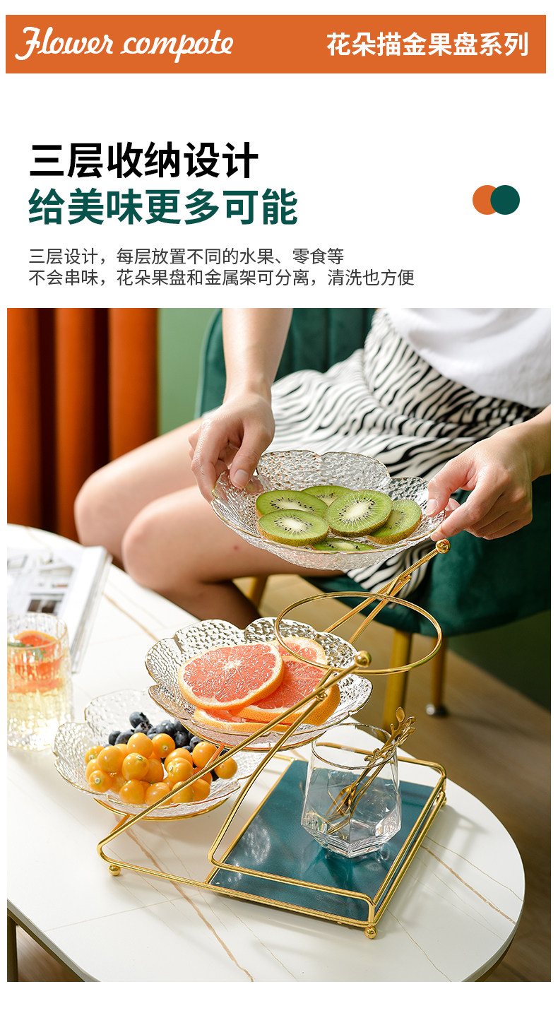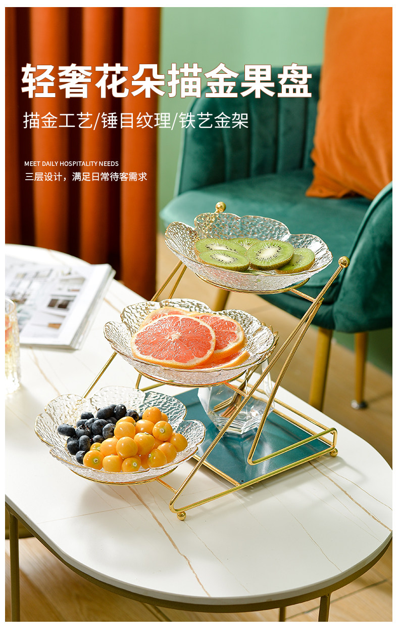 Интернет -красная гостиная домохозяйство фруктовый диск Light Luxury Style High -Crystal Glass Coffee The Plate Fruit Plant Simple Modern Snack Plate