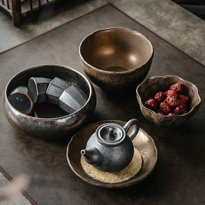 Японская керамическая тарелка с фруктами, позолоченный горшок, тарелка для закусок с конфетами, десертный стол для ночлега и завтрака, тарелка для выпечки, тарелка для подношений