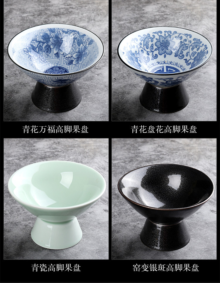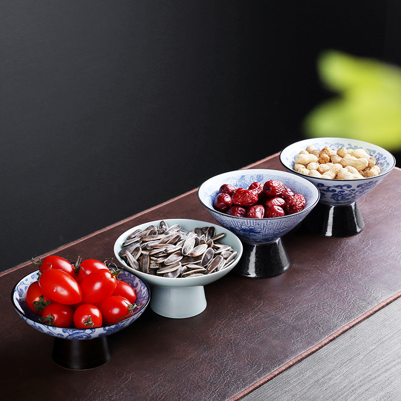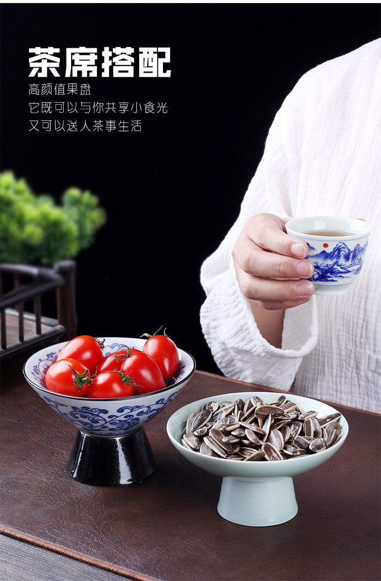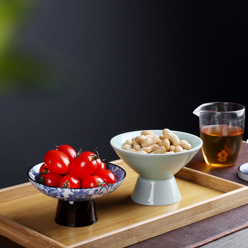 Керамическая тарелка с фруктами, креативная гостиная, домашняя закуска, десертная тарелка на высоких ножках, поднос в скандинавском стиле, сине-белая фарфоровая тарелка