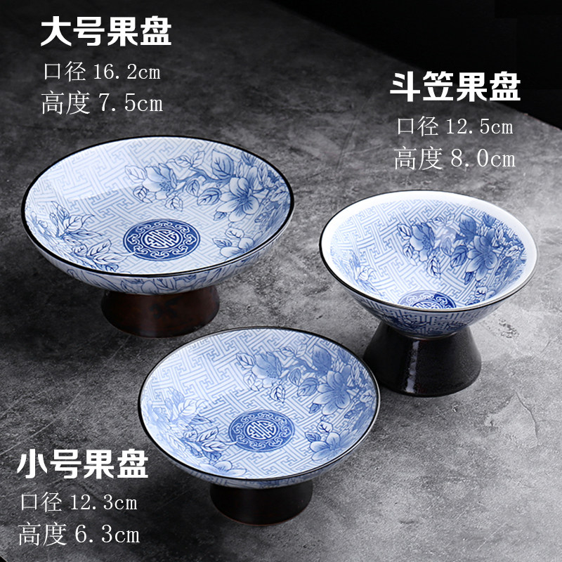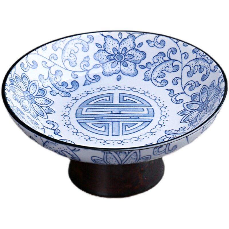 - Сине-белая высокая тарелка с фруктами Wanfu
