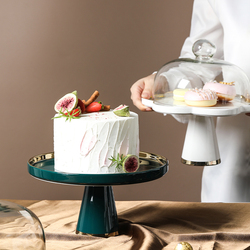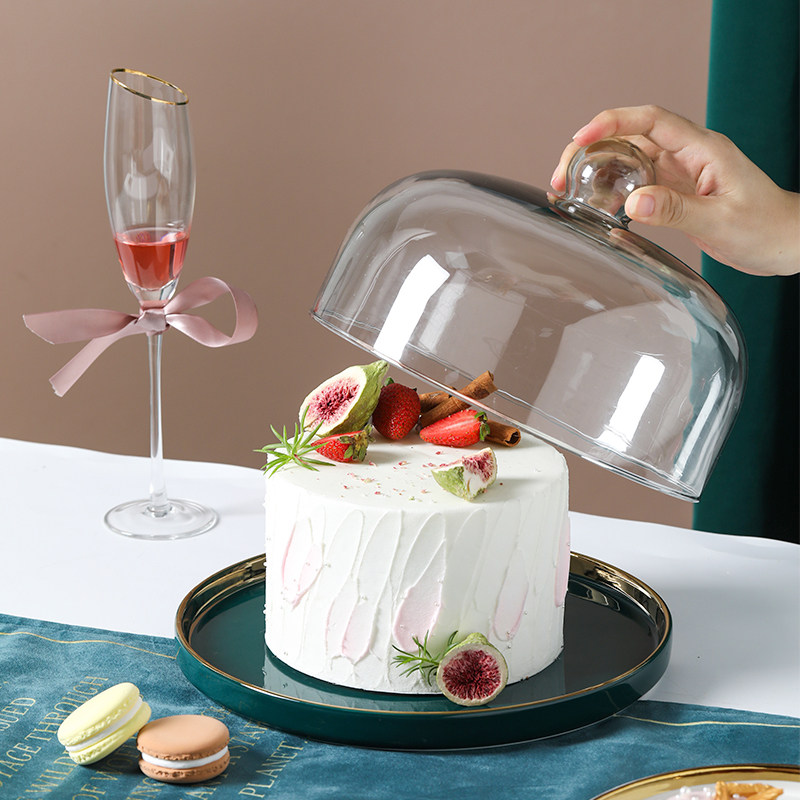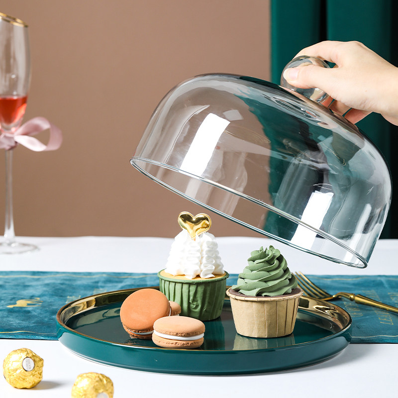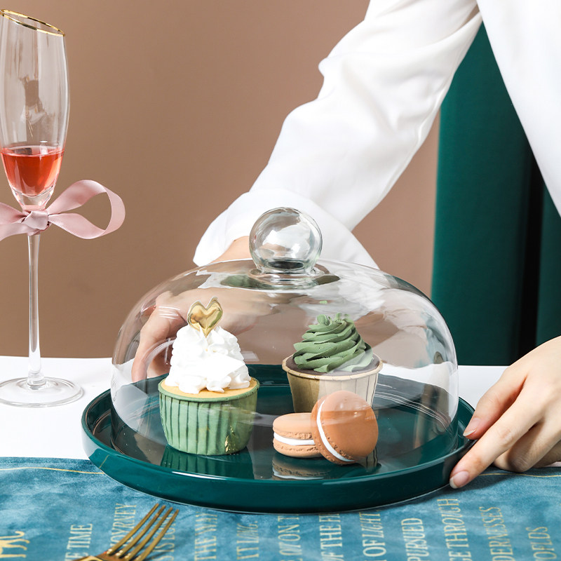 Бело-зеленый керамический диск с золотой оправой и крышкой из бессвинцового стекла, пыленепроницаемый дегустационный поднос, поднос для банкета, десерта, фруктов