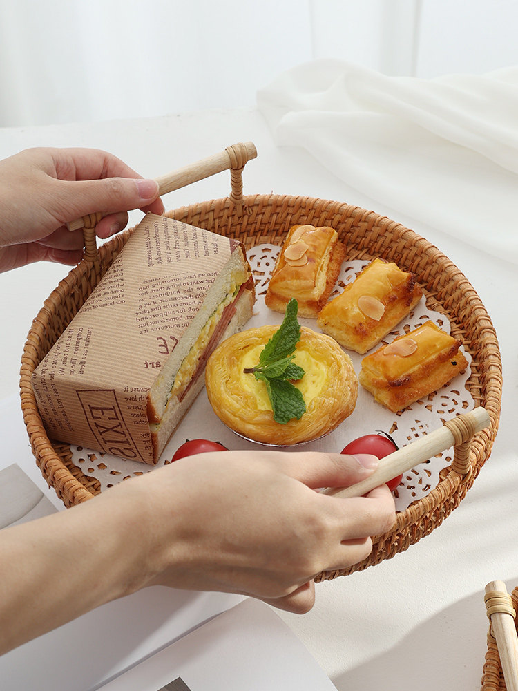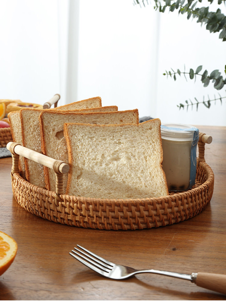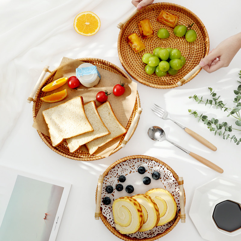 Вьетнамская лотка ротана круглая древесная фруктовая тарелка на пареный булочка для хранения корзины для завтрака для корзины для закуски для закуски для закуски хлеб