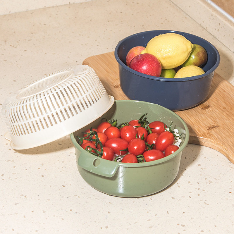 Круглый фруктовый синий пластик с двойной сливной корзиной.