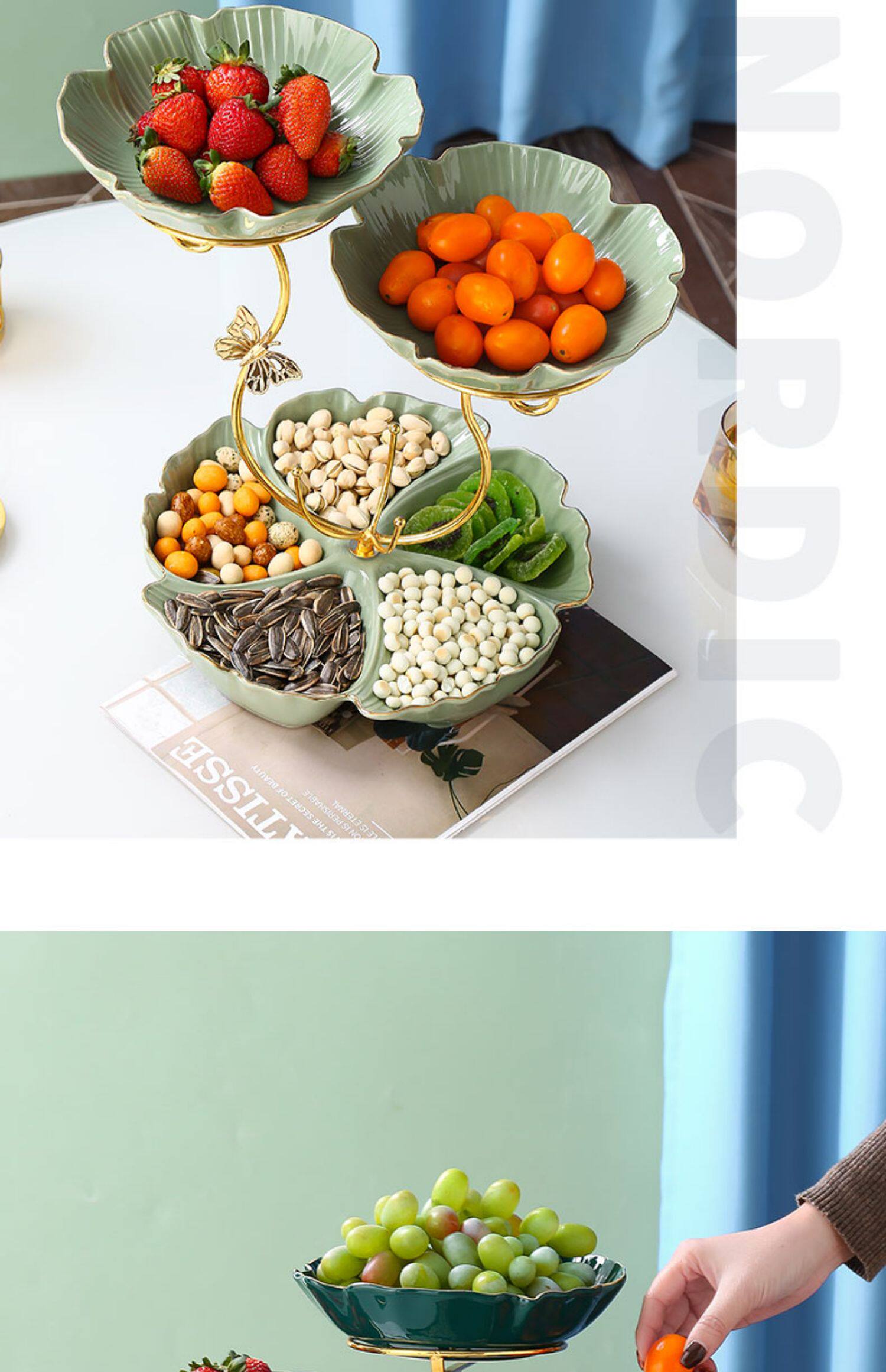 - 16-дюймовая полка в форме цветка с фруктовой тарелкой [матча зеленый]