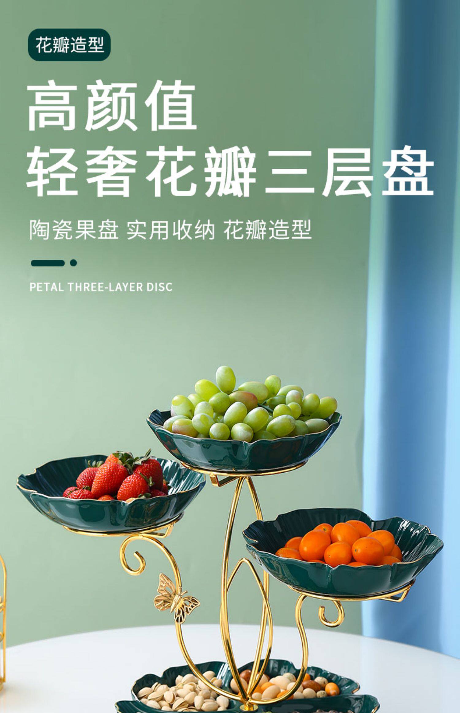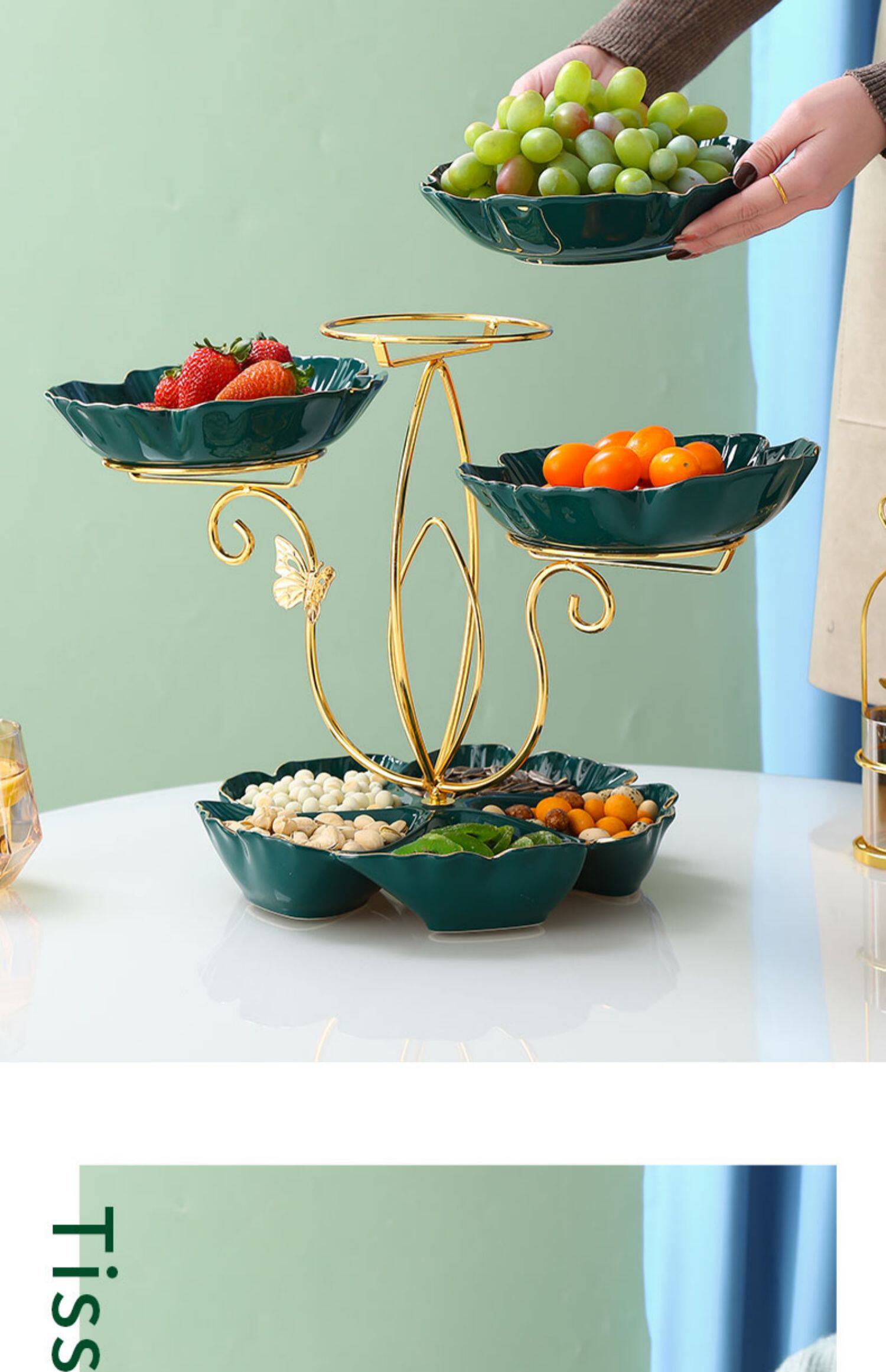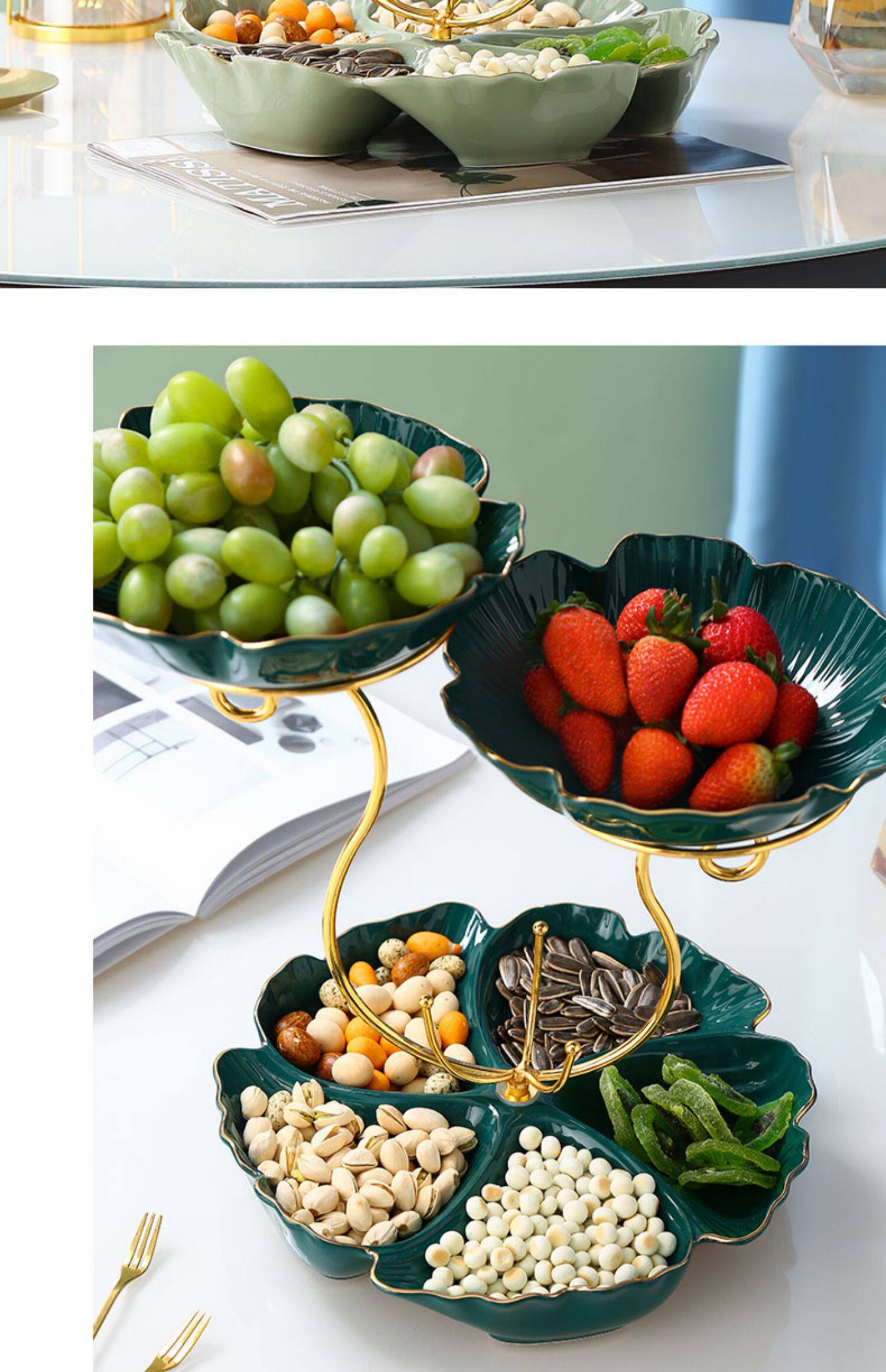 - 16-дюймовая полка в форме цветка с фруктовой тарелкой [Изумрудный]