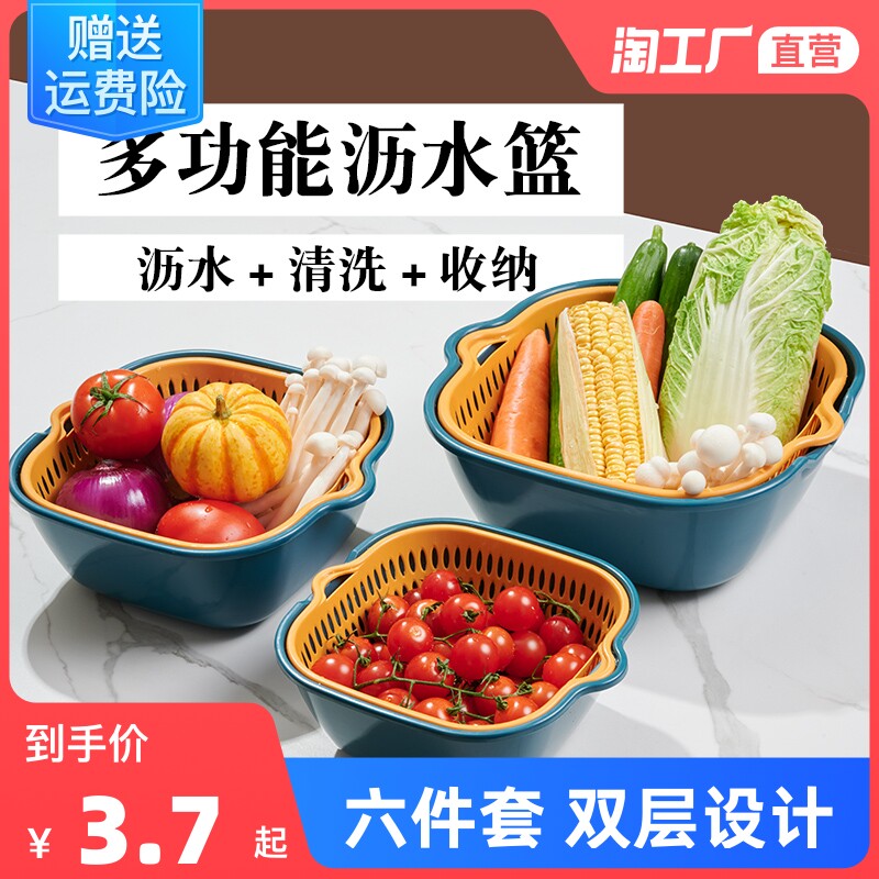 Двойная кухня в бассейне для мытья корзины, горячий горшок, горячий горшок, овощная корзина для мытья корзины, домашняя гостиная пластикового фруктового бассейна.