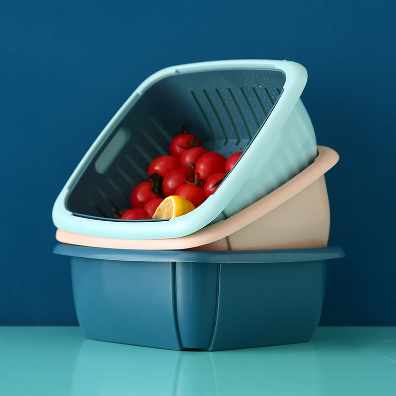 Двойная слоя для мытья корзины для мытья корзины, фруктовый диск Большая овощная корзина, овощная корзина с овощами и фруктами.