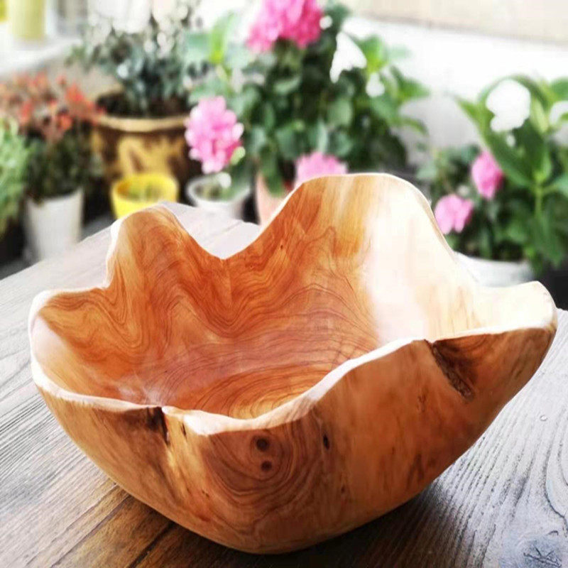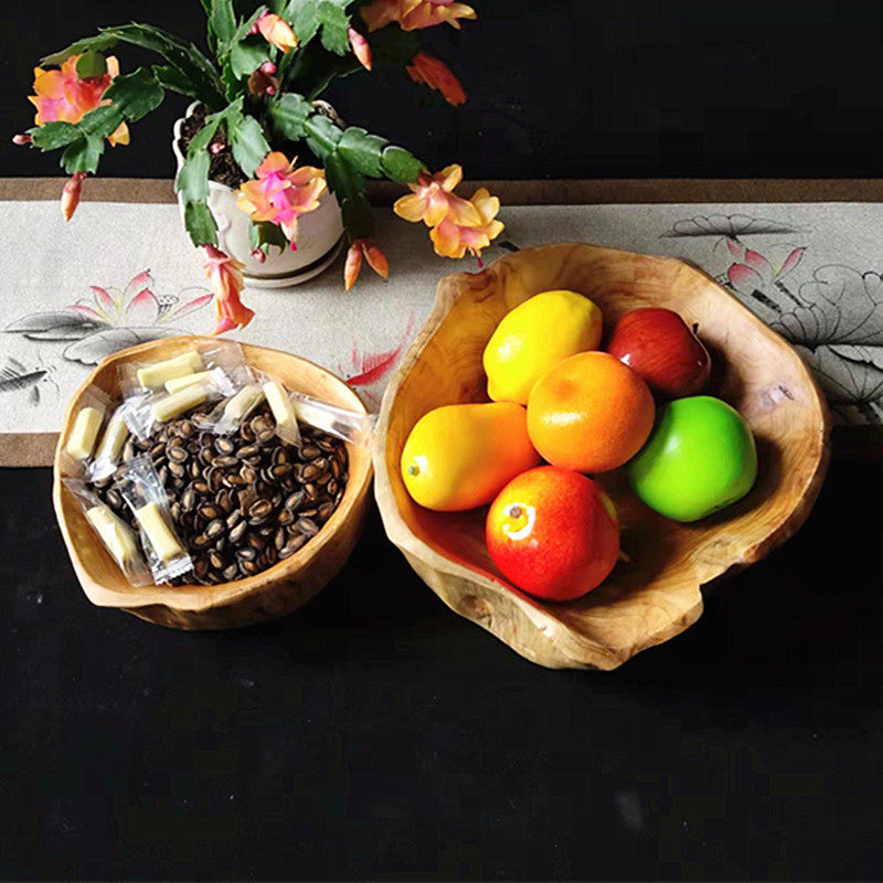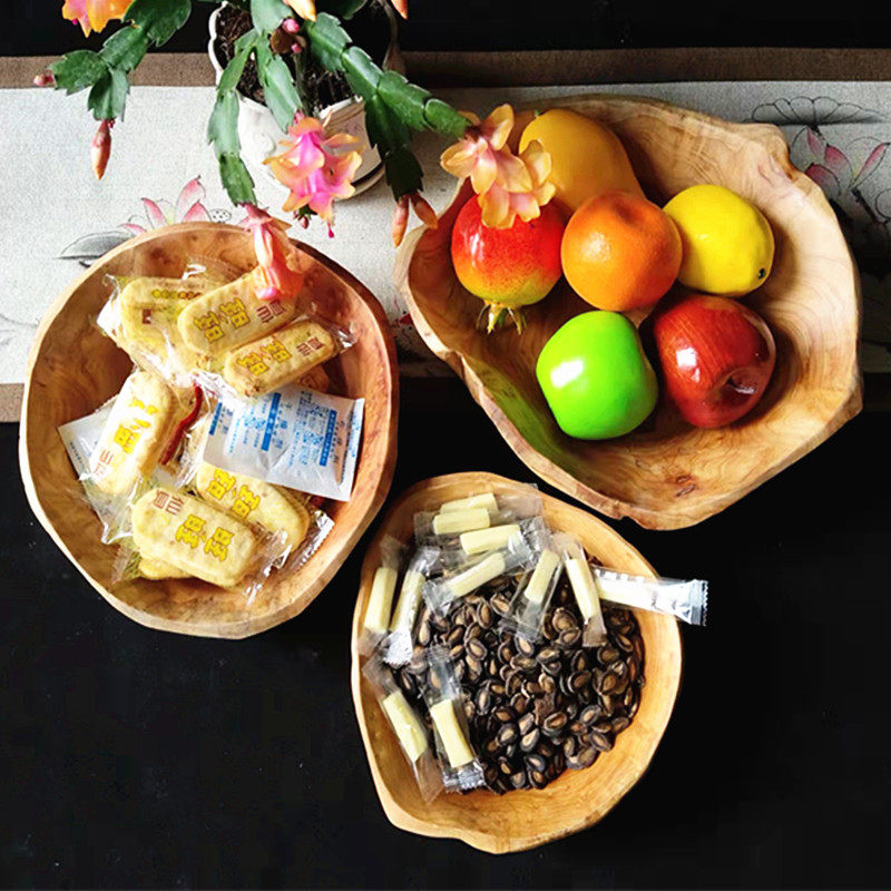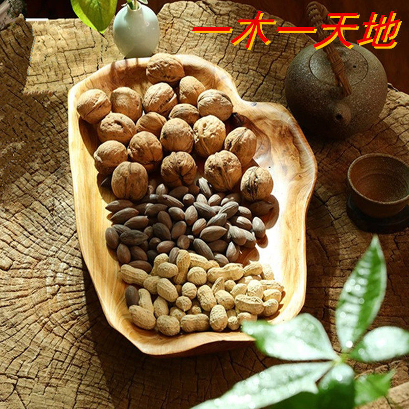 Тарелка с фруктами из цельного дерева, тарелка с семенами дыни, креативная гостиная, большая деревянная миска, резьба по корням, бревенчатая слива, деревянная раковина, посуда, тарелка для закусок
