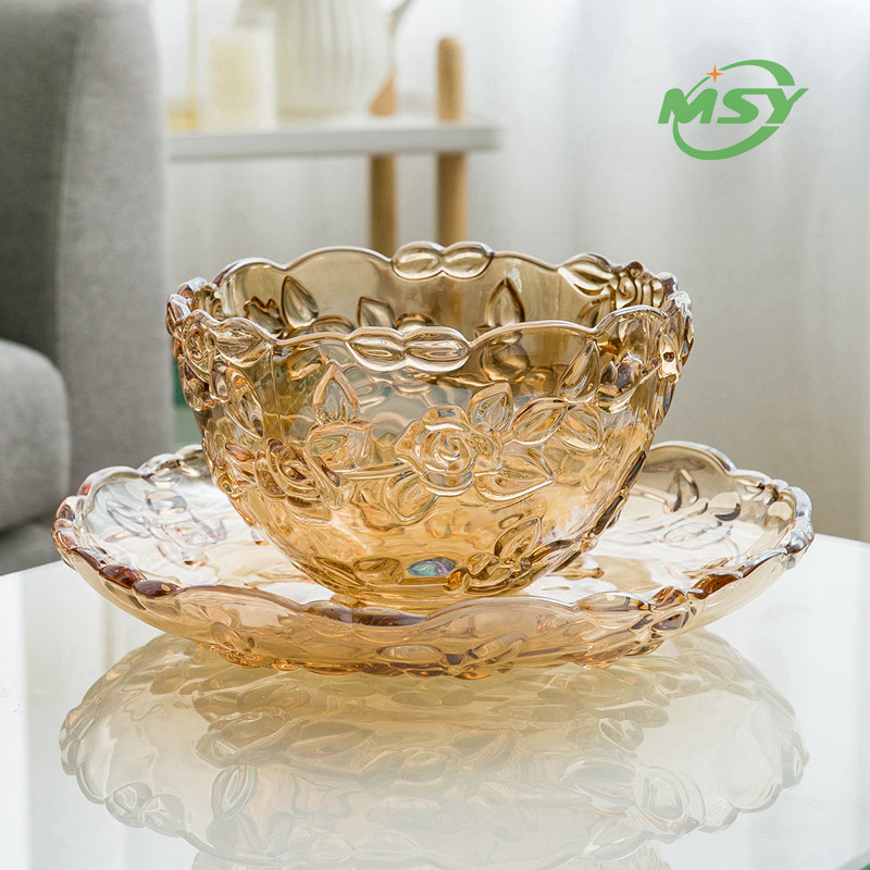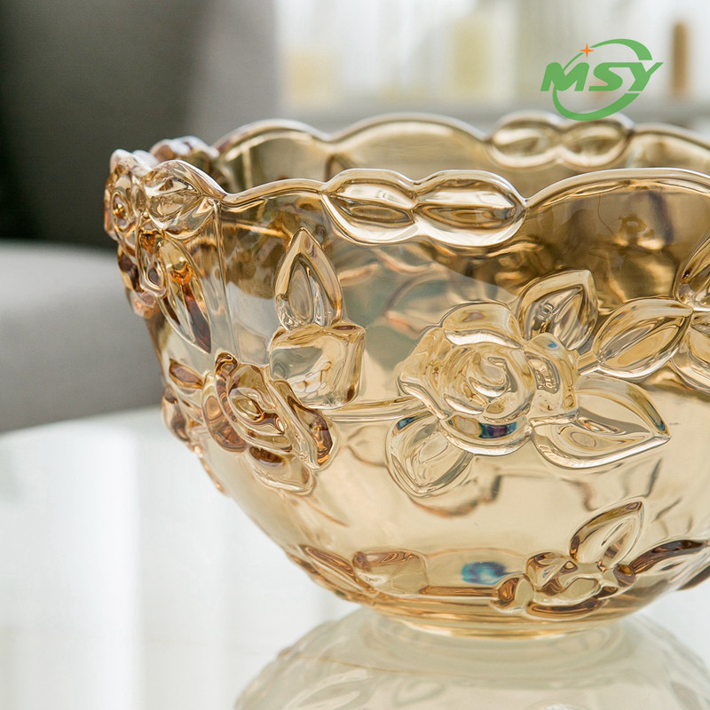 Европейская в стиле крупная хрустальная стеклянная фруктная тарелка золото роскошные розовые стеклянные фрукты борьба с сухими фруктами блюдо