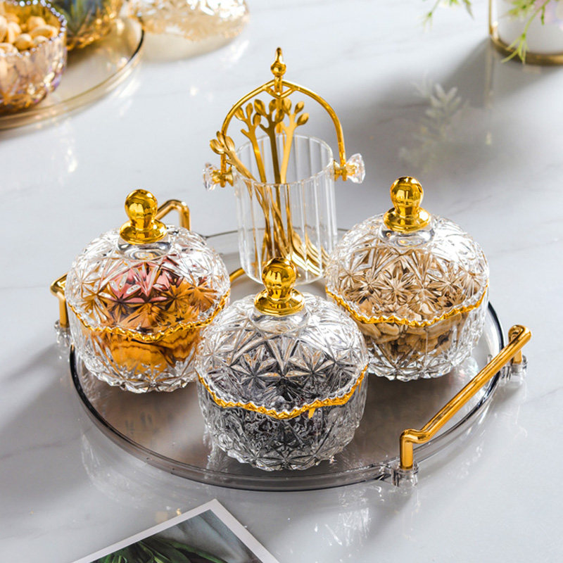 Европейский стиль конфеты jar home Home Glass Sterce Grast с крышкой для фруктового лотка десерта для закуски для закуски для закуски закуски