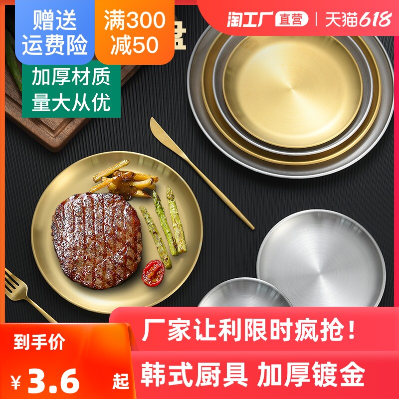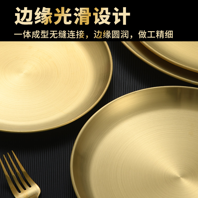 Корейская нержавеющая сталь диск золото золото толстая вода фруктовая тарелка кость блюдо западное кофейное мастерство.