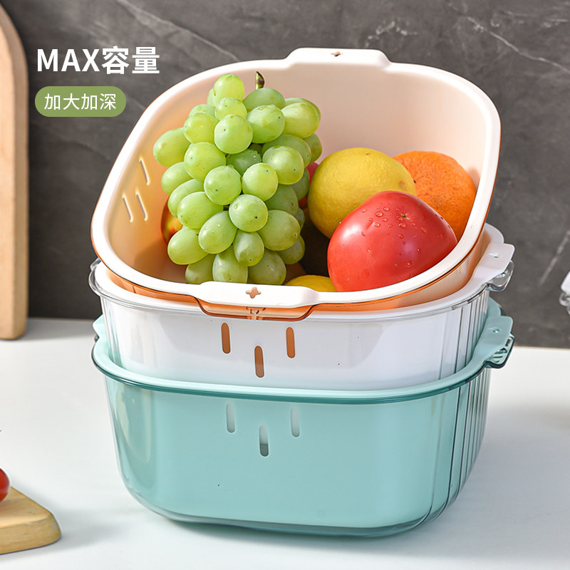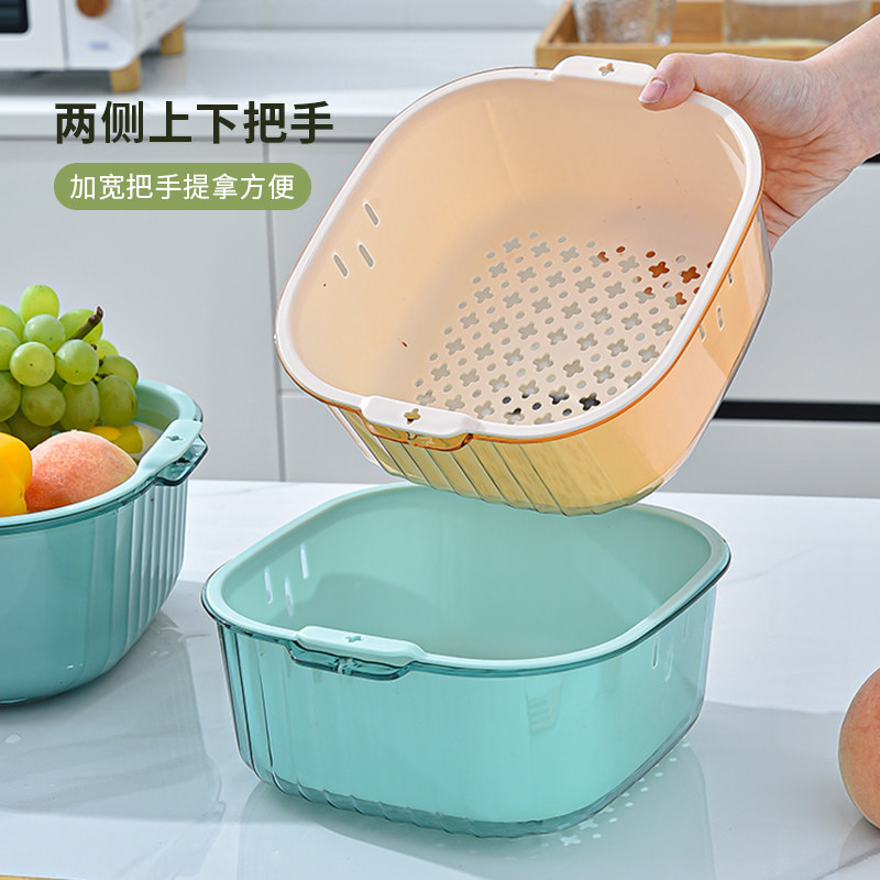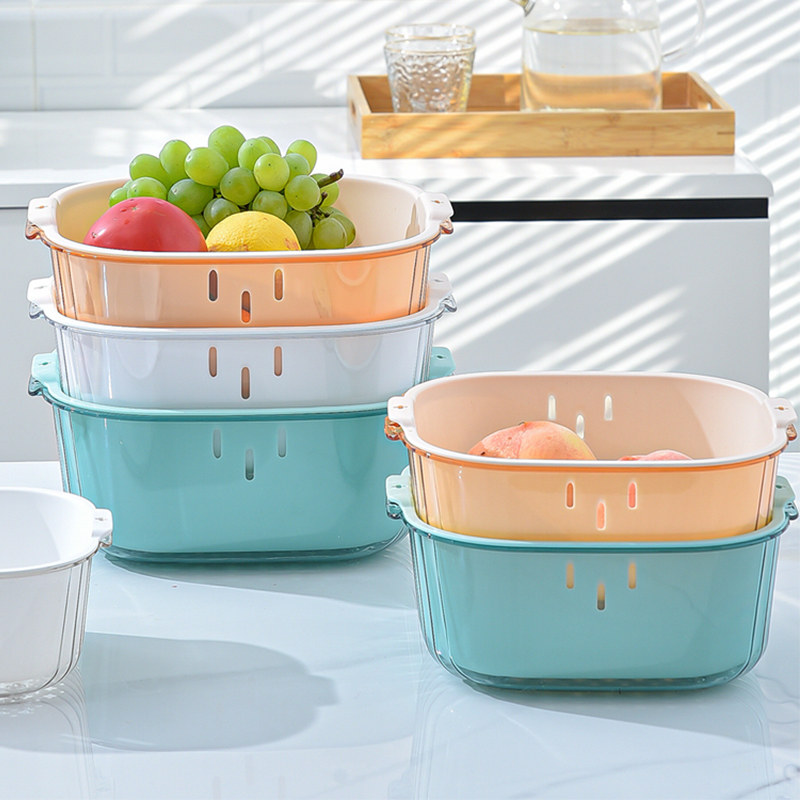 Двойное растительное растительное бассейн, дренирование корзины кухня дома гостиная пластинка пластинка пластиковая корзина для фруктов сито большое отверстие фильтр утечка утечка.