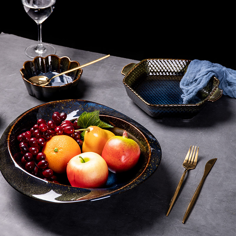 Японская стиль творческая килн варус Глэйз Керамические блюда градиент фруктовой тарелки в форме дома в форме альбома