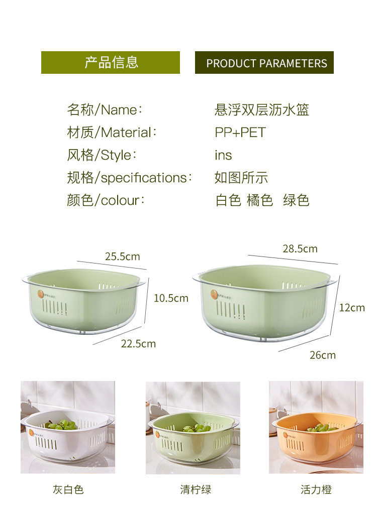 Mai Baolong двухслойная сливная мойка для овощей, кухонная пластиковая корзина для овощей, корзина для фруктов, бытовая раковина для слива фруктов и овощей