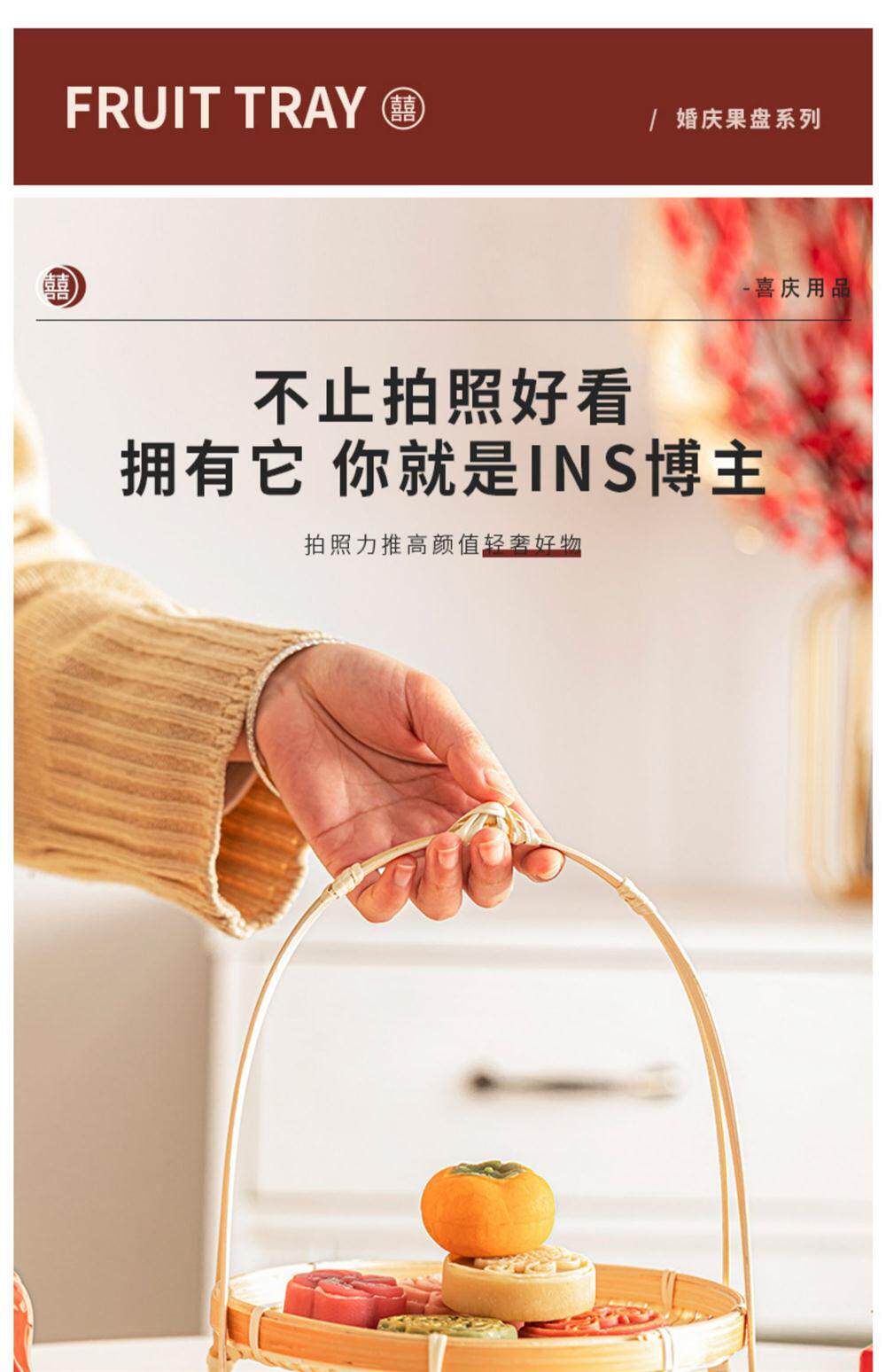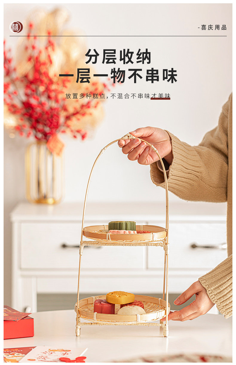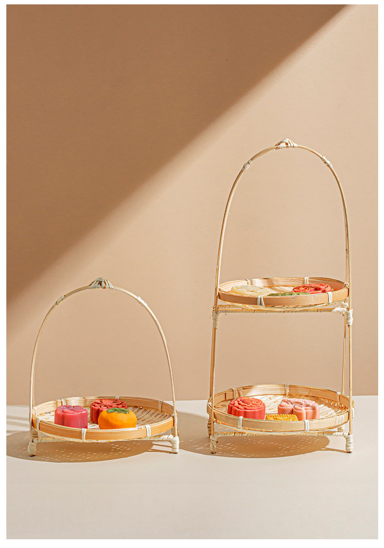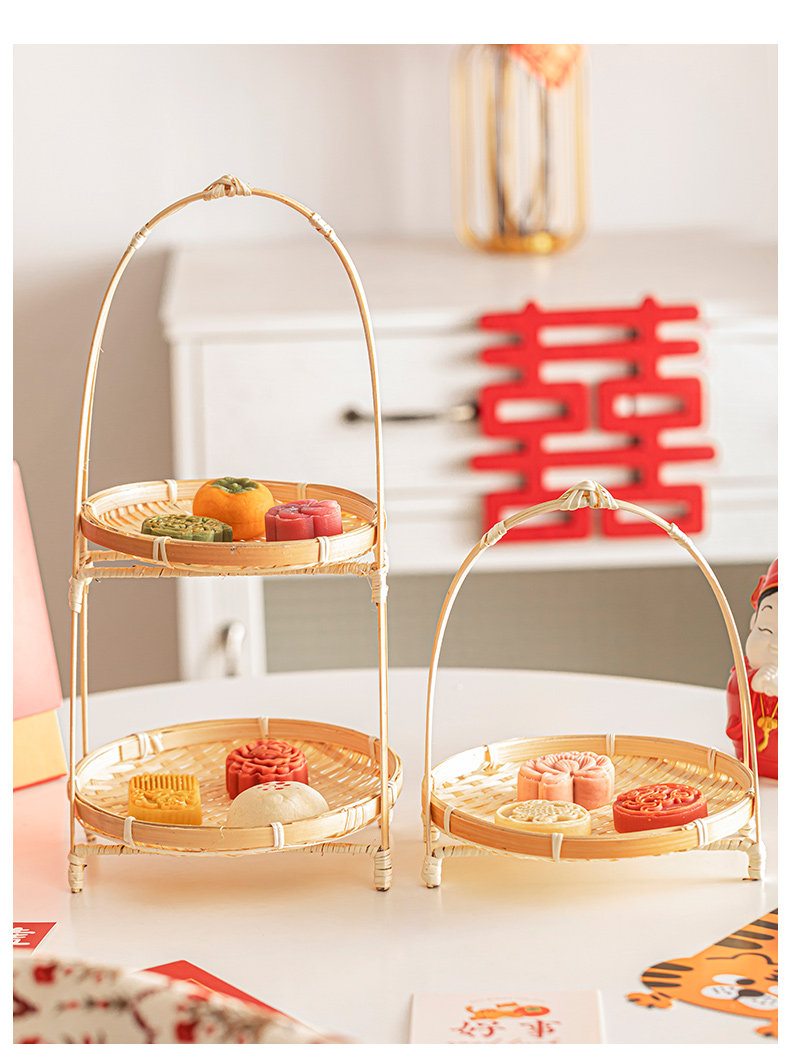 - Оригинальная бамбуковая цветная бамбуковая полоса двойная корзина фруктов