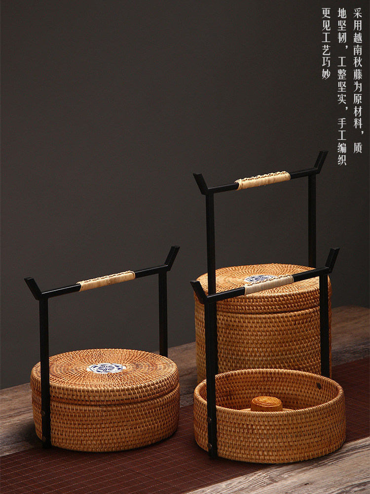 Ретро маленький портативный круглый чайный сервиз, коробка для хранения