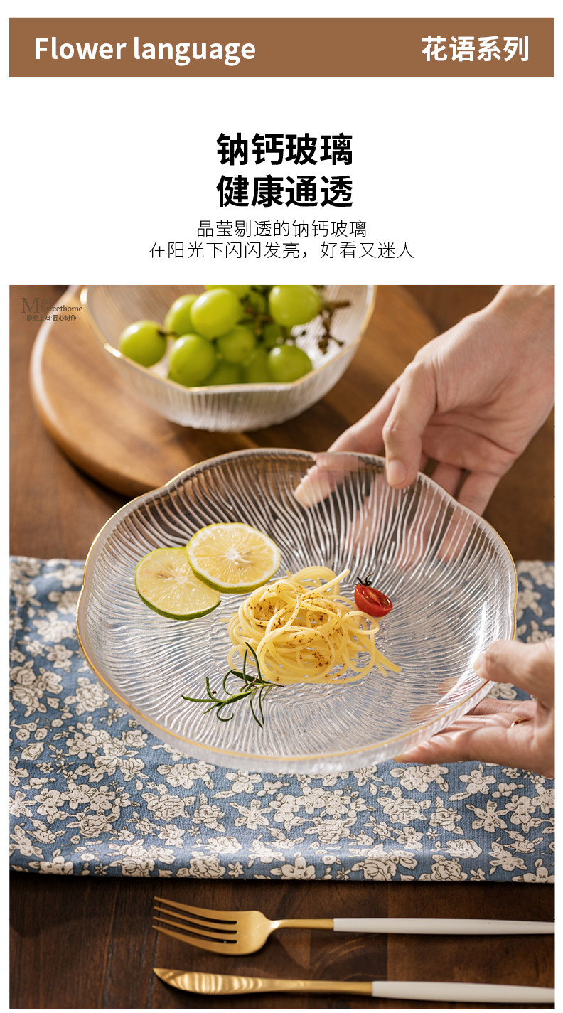 Легкая роскошная стеклянная тарелка фруктовая тарелка гостиная кофейное столик Семейный закуски закуски высокий хрустальный