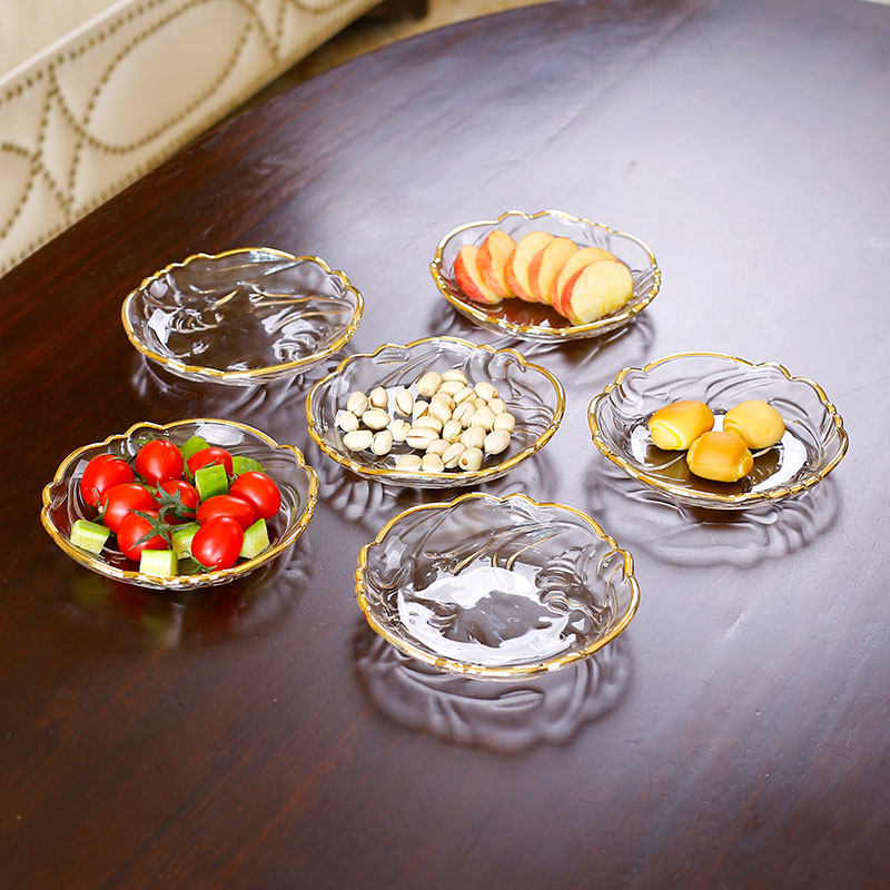 Импортированная из Японии легкая роскошная прозрачная стеклянная тарелка с фруктами в золотой оправе, маленькая изысканная тарелка для закусок для гостиной, дома, конфеты
