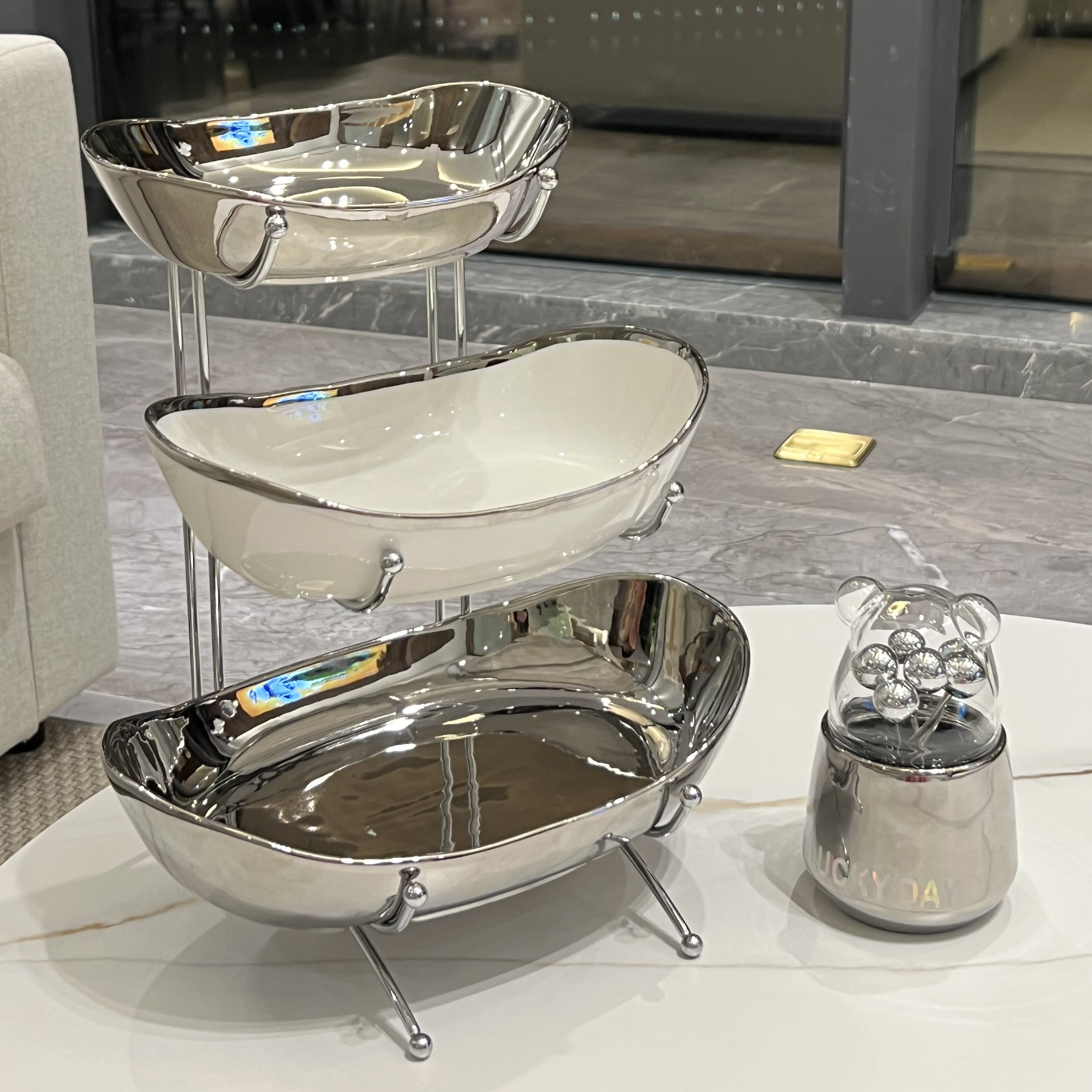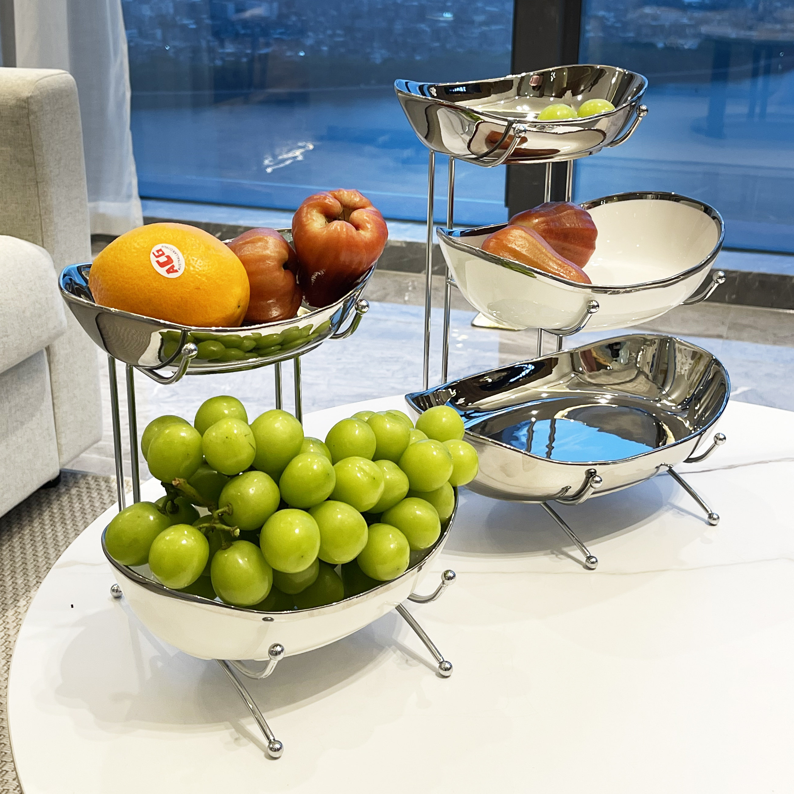 Три -летний магазин шесть цветов, легкие роскошные многослойные керамические фруктовые тарелки, хорошая домашняя мебель